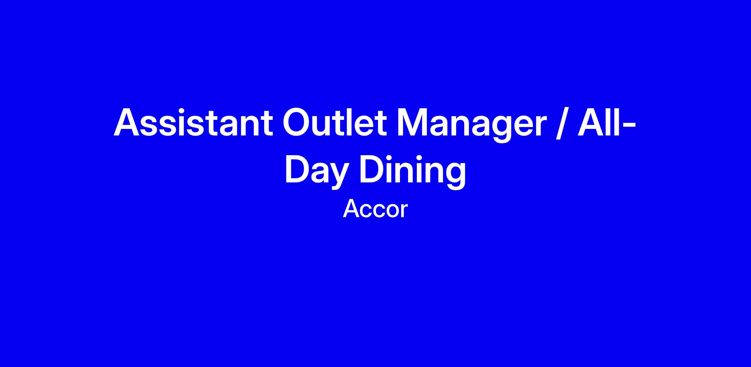 We are seeking a dynamic and experienced Assistant Outlet Manager who will play a key leadership role in the day-to-day operations of the hotel’s all-day-dining buffet restaurant. This role supports the Outlet Manager in overseeing service excellence, guest satisfaction, staff supervision, and operational efficiency. The ideal candidate must have strong leadership skills, a passion for hospitality, and experience in managing high-volume buffet operations within a luxury hotel setting.