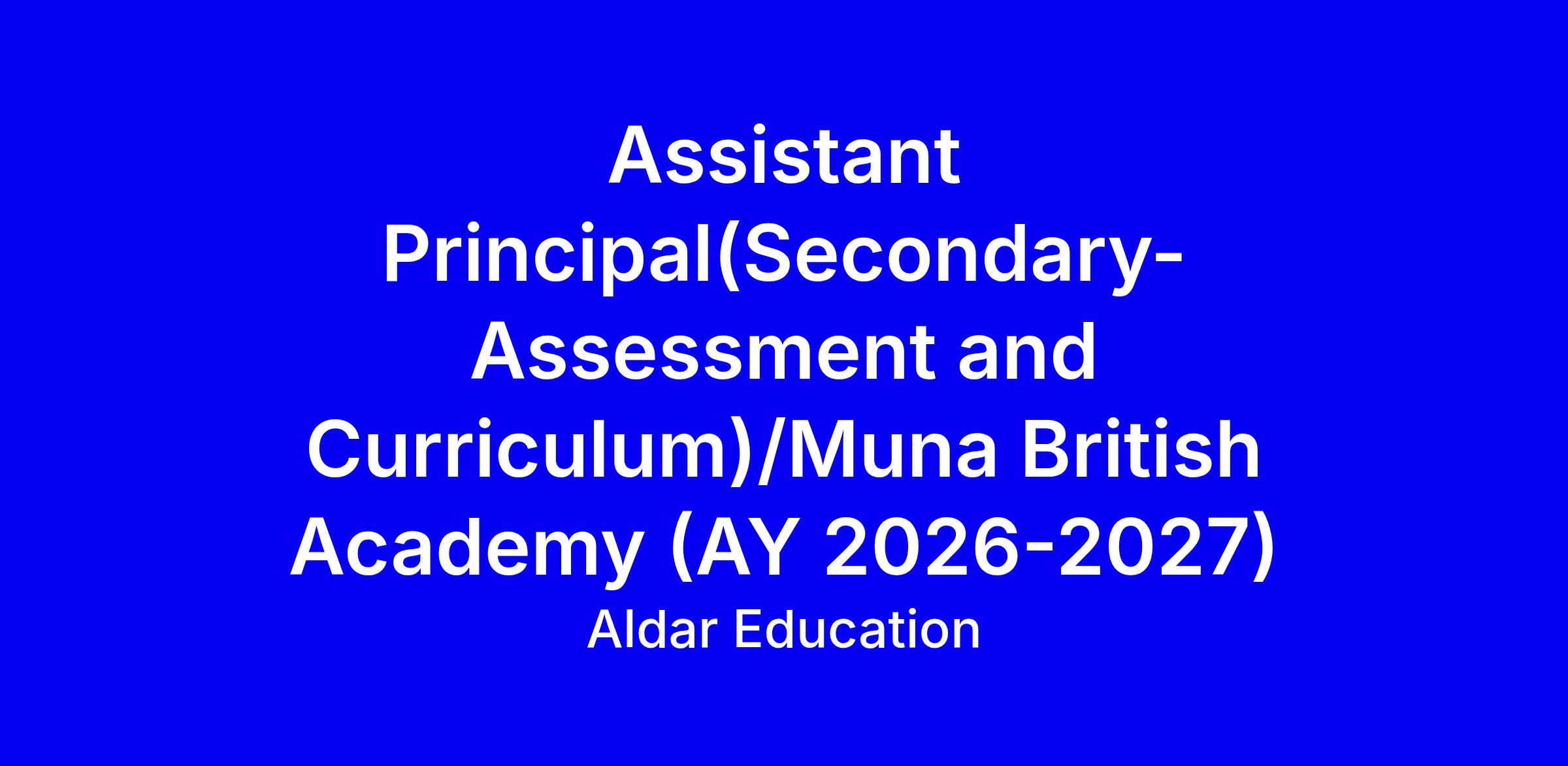 Aldar Education is seeking an outstanding Assistant Principal-Assessment and Curriculum (Secondary) to join Muna British Academy in Abu Dhabi, commencing in August 2026.