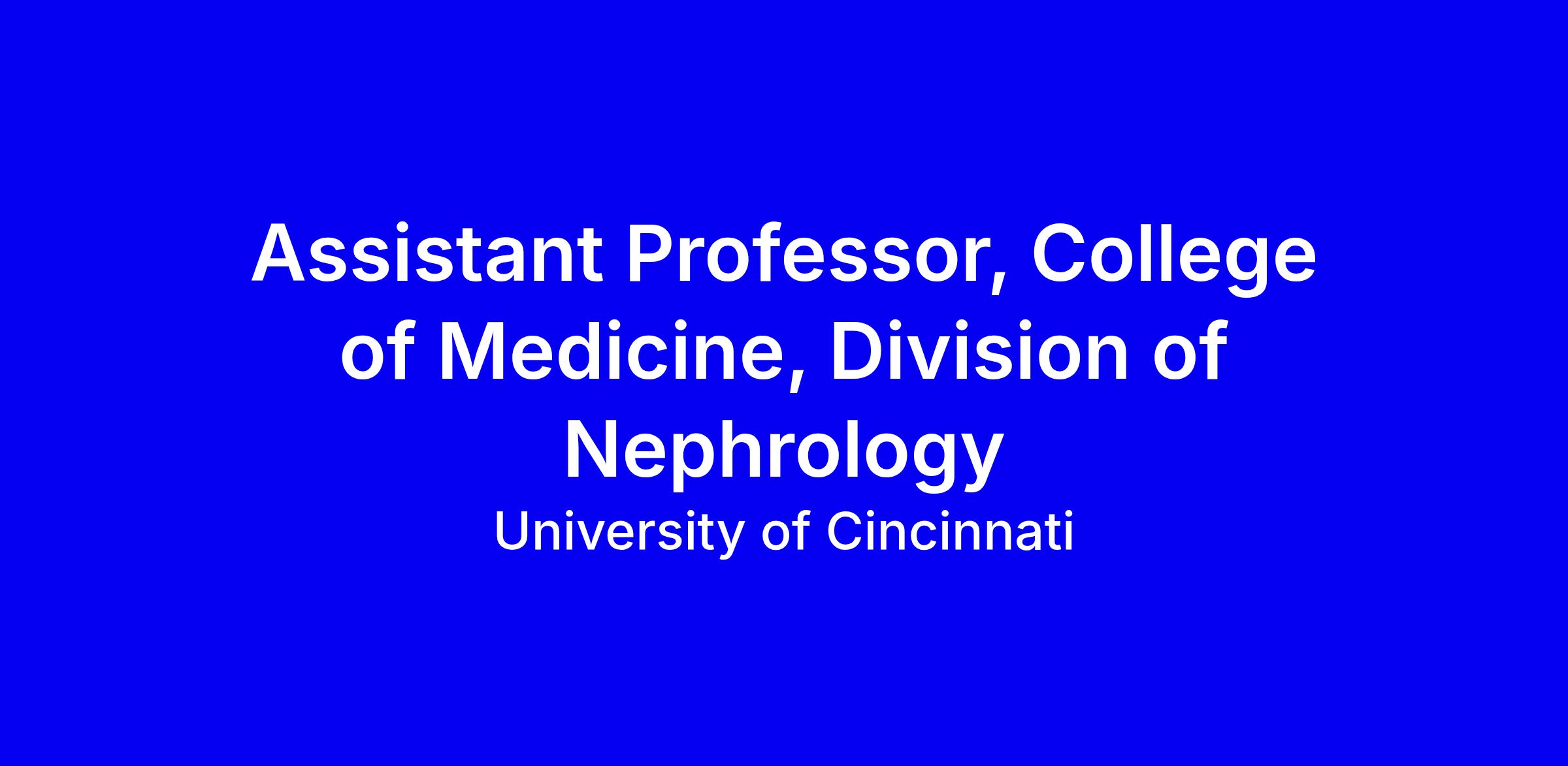 University of Cincinnati College of Medicine invites a full-time onsite Assistant Professor in Internal Medicine, Division of Nephrology, to contribute to transplant and general nephrology care, teaching, and an active research program. The role includes inpatient and outpatient nephrology, mentorship of fellows and medical students, and building a nationally competitive kidney disease program with external funding. Ideal candidates will publish at senior or corresponding author level, collaborate across nephrology and transplantation, and balance clinical duties with research. Requirements: MD or equivalent and PhD in nephrology or related field, Ohio license, 3-year Internal Medicine residency, 2-year nephrology fellowship. Apply via SuccessFactors; tailor materials to translational nephrology, outline a funding plan, and show teaching excellence; transcripts required; internal applicants must use internal portal.