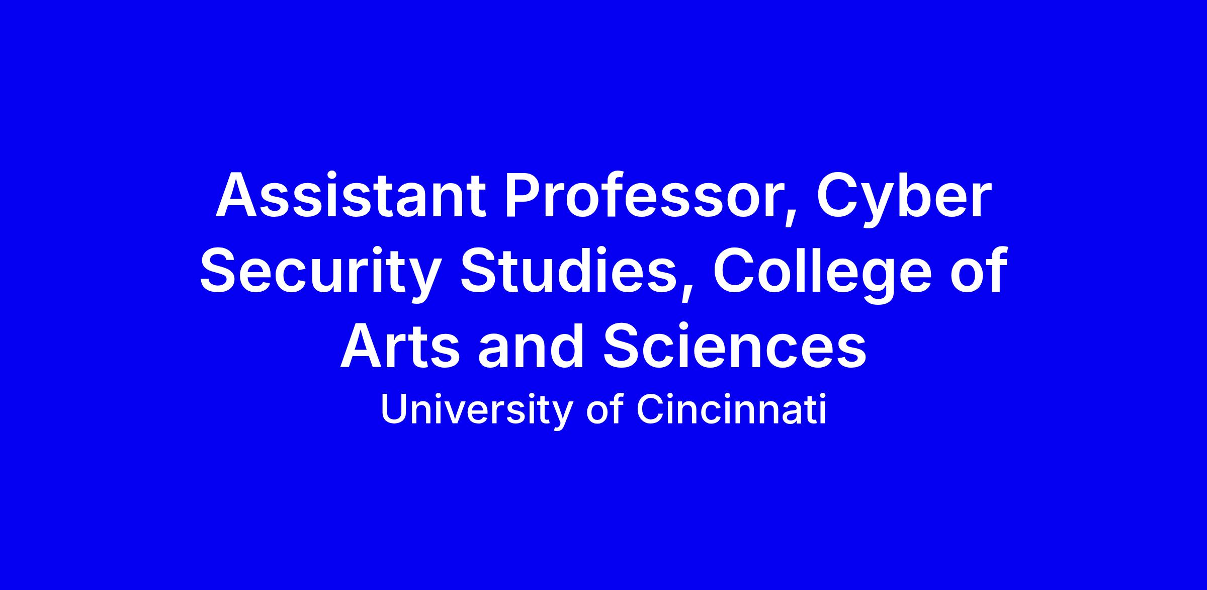 University of Cincinnati’s School of Public and International Affairs seeks a tenure-track Assistant Professor in Cyber Security Studies with a concurrent appointment as Faculty Fellow in the Center for Cyber Strategy and Policy to advance grant-funded research on cyber threat modeling and related US national security topics through the National Security Research Institute. The role includes teaching the core undergraduate National and International Cyber Strategy and Policy course online (about 120 students per term) twice a year and two other courses in a new BA in Cyber Strategy and Digital Affairs, with potential graduate offerings. Requirements: PhD in Political Science or related field and an active research program with funding potential. Apply online with a cover letter, CV, three references, and a one-page statement on contributions to team culture through teaching and service; upload under "additional documents." Review begins immediately; start date August 15, 2026. Internal UC applicants must apply via SuccessFactors; inquiries to [email protected]. Competitive salary and benefits including tuition remission and generous leave; equal opportunity employer.