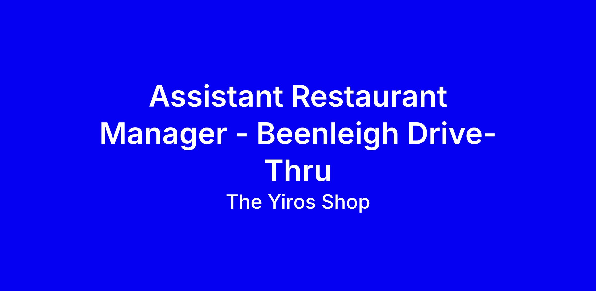 We are looking for an experienced Assistant Restaurant Manager to join our Berrinba Drive-Thru Team!!