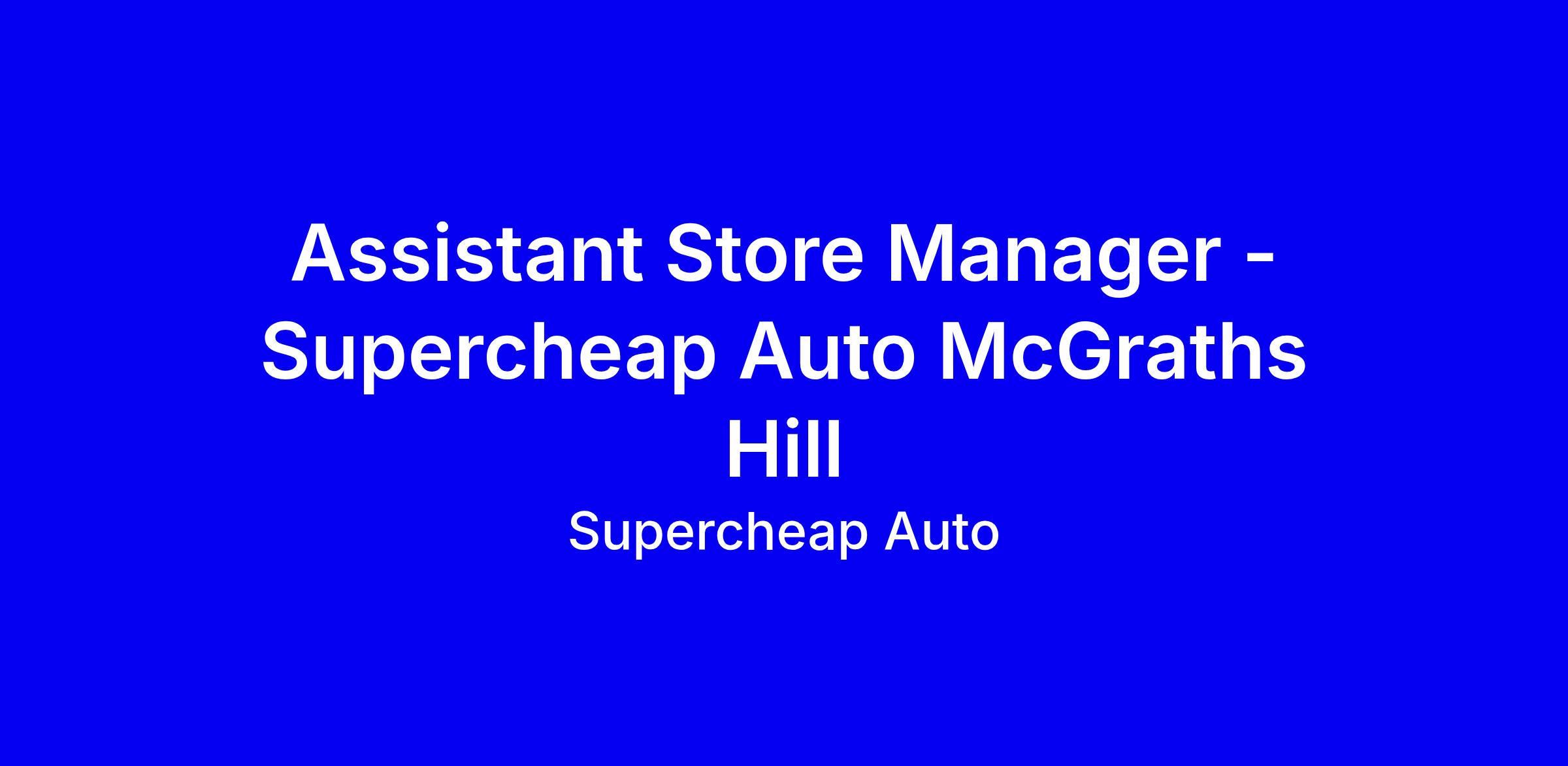 Supercheap Auto McGraths Hill is seeking an Assistant Store Manager or rising Supervisor to lead a 10+ team, drive KPIs and sustain a store culture. You’ll support the Store Manager across operations, customer service, stock control, merchandising and safety while developing a performing crew. What matters most is proven retail leadership, the ability to motivate others, and a willingness to learn automotive retail; mechanical experience helps but isn’t required. Benefits include one in three weekends, competitive pay with super and potential bonuses, team discounts across brands, and growth within 160+ stores. To apply, showcase leadership, retail metrics, customer focus, and our inclusive wellbeing culture.