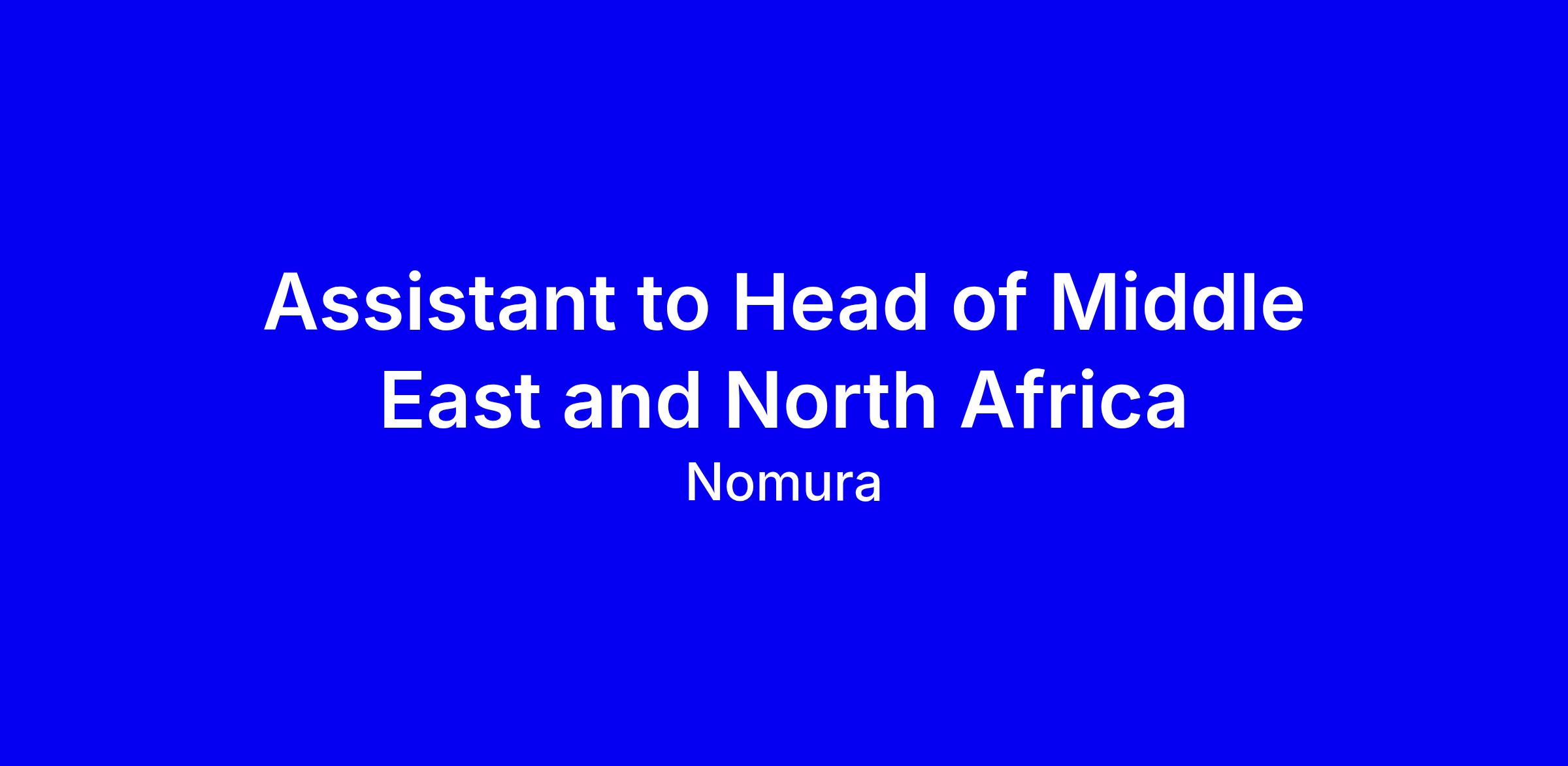 - Phone coverage for the Head of Middle East and North Africa, involving significant interaction with clients, peers and senior members of the Nomura Group
