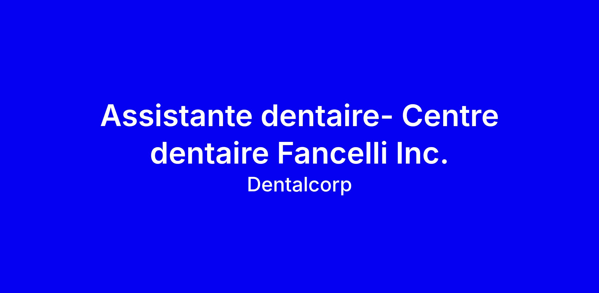 Centre dentaire Fancelli Inc. (Dentalcorp) recrute une assistante dentaire pour les vendredis à Longueuil, horaire 7 h 30 à 15 h 00, poste sur site à temps partiel. Pour maximiser vos chances, mettez en avant votre DEP en Assistance Dentaire et votre expérience. Avantages: RRSP collectif, aide aux employés, formation continue, équilibre vie pro vie privée, accès à une technologie moderne. Responsabilités: assistance clinique au fauteuil, relation patient, préparation des salles selon les protocoles d'infection et de sécurité, DO, CEREC, endo simple, chirurgie simple, orthodontie, PPF. Exigences: diplôme, expérience est un atout, maîtrise du français et de l anglais, admissible légalement au travail au Canada. Aménagements? contactez 416-558-3883.