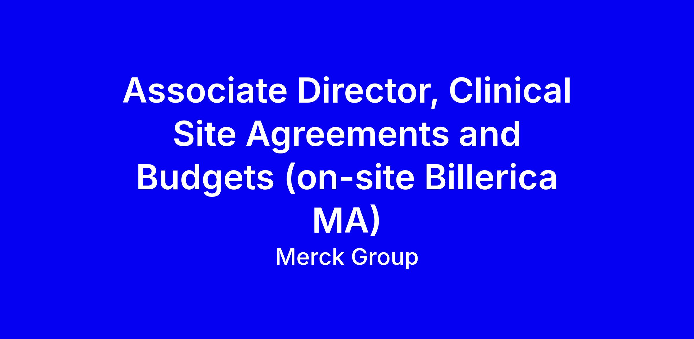 Merck Group is seeking an Associate Director, Clinical Site Agreements and Budgets, on-site in Billerica, MA, to lead a Start-up Solution Unit focused on Clinical Site Agreements. You will support review and execution of trials with Investigators worldwide, manage legal and budget escalations, and drive site activation. You will develop negotiating parameter guidance, approve FMV assessments, and lead CDA customization in coordination with Legal. Ideal candidates hold a medical or life sciences degree with 10+ years in clinical research, 5+ years negotiating contracts and budgets, and external vendor oversight. To apply, tailor your resume to CSA, FMV, and CDA work, highlight collaboration and on-site readiness, and confirm US work eligibility since sponsorship is not offered for US work.