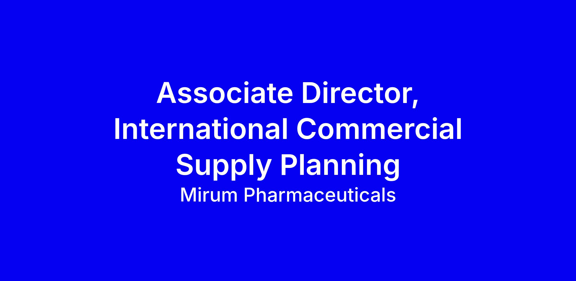 The Associate Director, International Commercial Supply Planning is responsible for leading Mirum’s commercial finished goods supply planning, packaging operations, CPO management, serialization and artwork management processes across international markets. This role ensures uninterrupted, compliant product supply by orchestrating end-to-end planning activities and partnering closely with CMC, Regulatory, Quality, Global Commercial Supply Chain, and external packaging partners. This person will drive continuous improvement, support new product introductions, manage complex jurisdictional requirements, and maintain robust operating processes and systems. This position requires a strategic yet hands-on leader who can thrive in a dynamic environment while maintaining strong cross-functional collaboration and operational excellence.