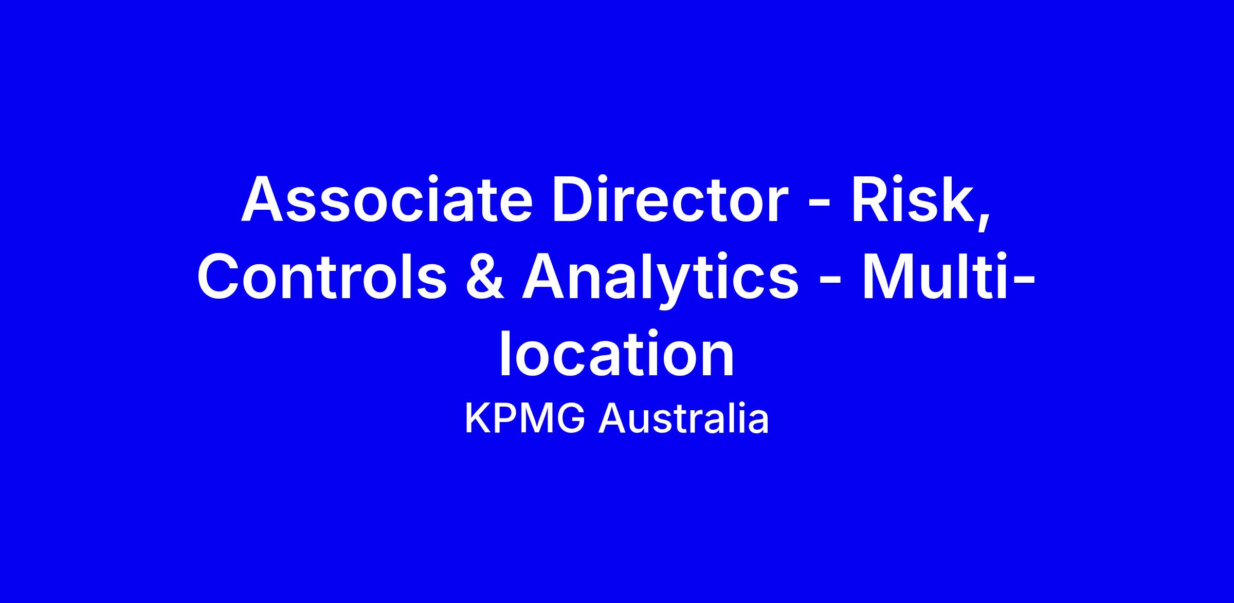 KPMG Australia is recruiting for an Associate Director in Risk, Controls & Analytics within the Governance, Risk, Assurance & Analytics team in Consulting. The role is multi location with base options Melbourne, Sydney or Brisbane, onsite. You will apply targeted data analytics to support internal audit, risk and assurance engagements for clients, translating objectives into data driven testing, extraction and visualization. You will lead complex engagements, empower diverse teams, and translate analytics into clear, actionable insights for risk stakeholders. Key skills include SQL and Alteryx, with Power BI or Tableau. To apply, tailor your CV to highlight risk advisory or internal audit experience, strong communication, and a track record delivering practical analytics that improve controls, while noting collaboration and flexibility.