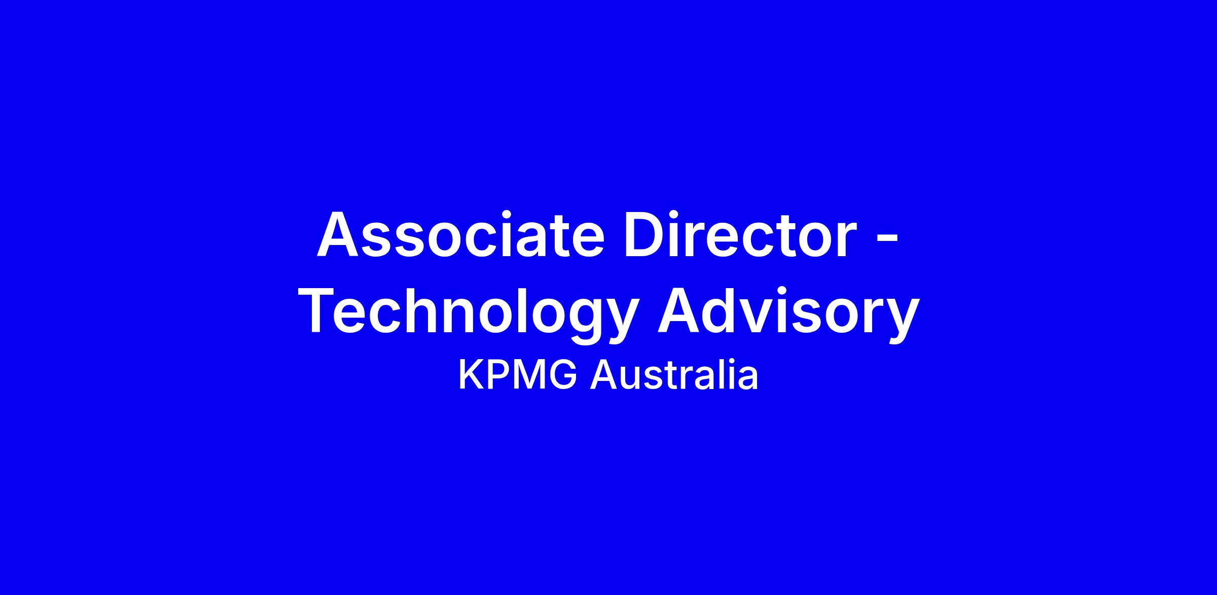 Joining KPMG Australia as Associate Director - Technology Advisory means shaping technology strategy, architecture and operating model design to deliver business impact in Melbourne onsite. The role seeks mid career professionals with proven technology advisory experience across IT and business, including government and data and AI projects, who can lead engagements, run workshops and partner with senior clients. You will steer pursuit teams, mentor colleagues and collaborate globally. What sets you apart is a history of delivering client value through transformation, strong communication with engineers and C level stakeholders, and hands on experience in strategy, architecture, infrastructure and DevOps. Apply with quantified outcomes and clear STAR stories, highlighting cross‑border leadership; KPMG offers mentorship, learning, flexibility and an inclusive culture, with adjustment support if needed.