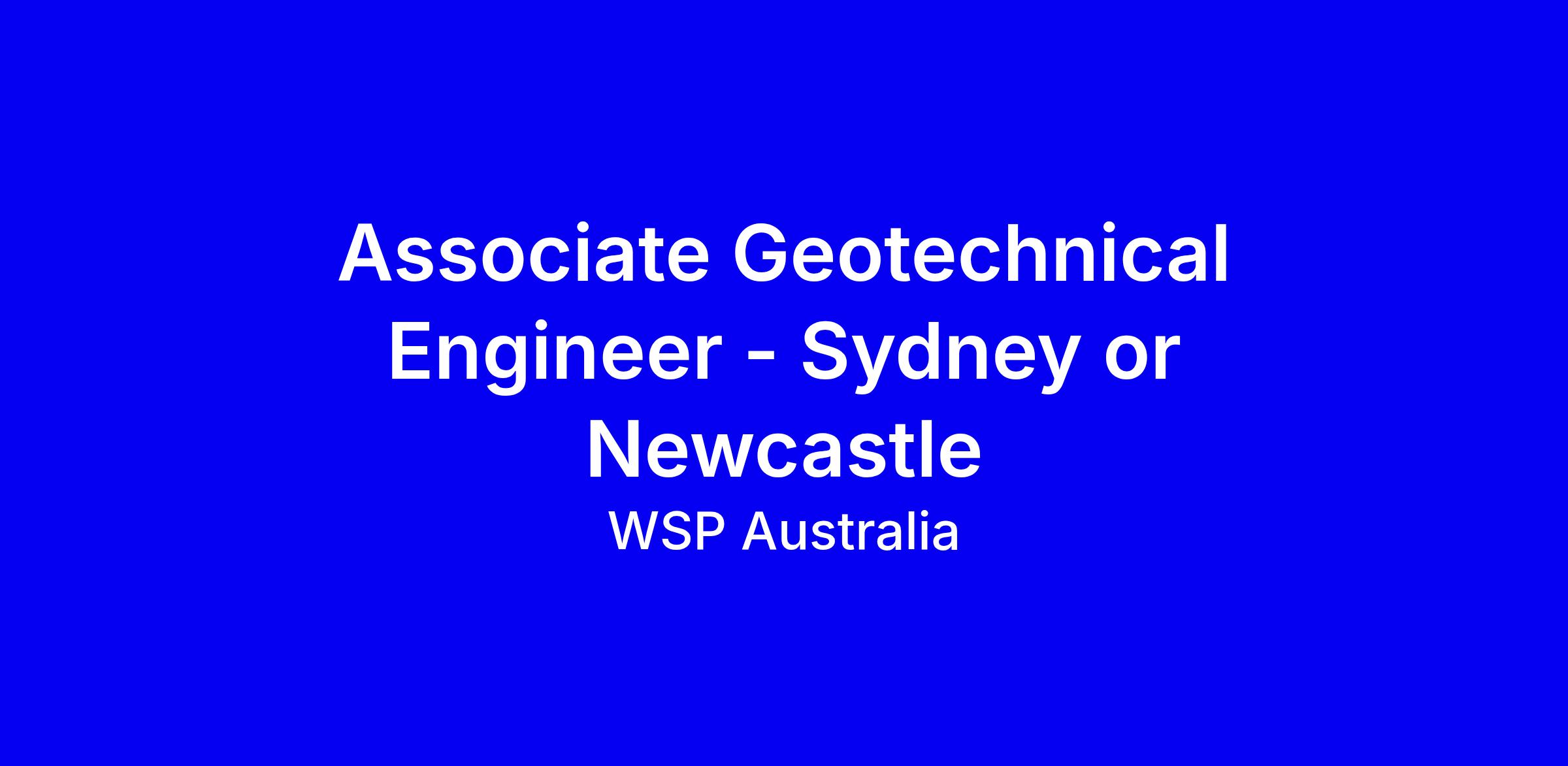 Join WSP Australia as an Associate Geotechnical Engineer based in Sydney or Newcastle and work on bids and delivery across transport, water, mining, energy, property and government sectors. In this full‑time onsite role you’ll design, manage and execute geotechnical investigations from proposal through fieldwork and reporting, while collaborating with a team and experts to deliver safe foundations and earthworks. The position offers exposure to projects and opportunities to lead as a geotechnical design manager with a focus on innovation, safety and client outcomes. To apply, tailor your CV to show field management, geotechnical design, report writing, client communication and teamwork, plus willingness to spend time in the field and drive business development.