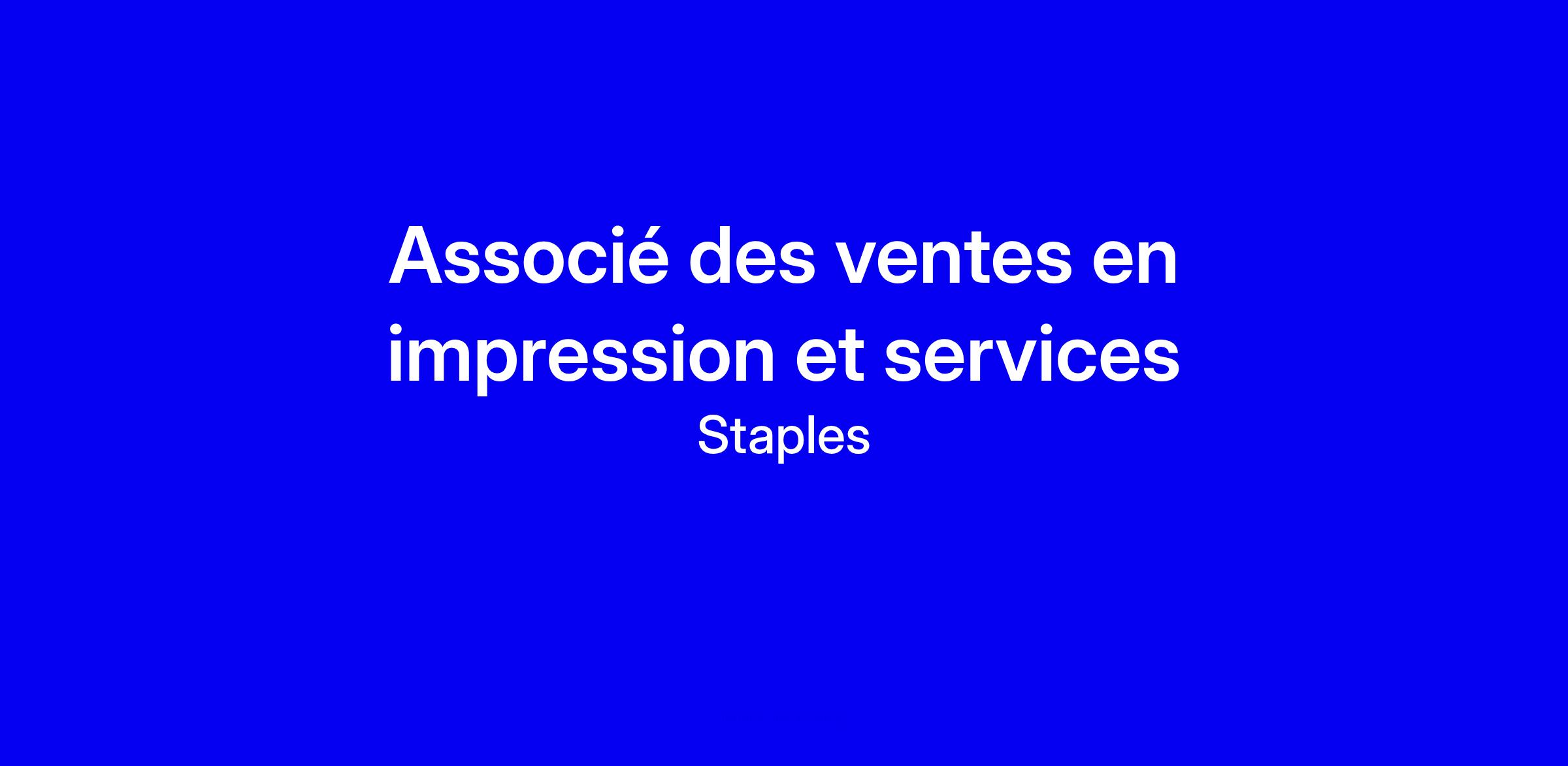Staples cherche un Associé des ventes en impression et services pour un poste temporaire sur site à Québec. Vous offrirez un service client d’exception, utiliserez notre modèle de vente pour proposer des solutions d’impression et aider les clients à passer et suivre leurs commandes, traiterez les transactions au PDV, gèrerez l’approvisionnement et le merchandising des zones d’impression et de caisse, et participerez à l’atteinte des objectifs de vente et de marge. Les candidats idéaux ont trois mois à un an d’expérience en vente au détail, d’excellentes aptitudes relationnelles et une forte capacité de travail en équipe, avec une envie d’apprendre rapidement les produits et services. Pour postuler, personnalisez votre CV et votre lettre en démontrant comment vous avez boosté la satisfaction client ou atteint des objectifs et indiquez votre disponibilité sur site.