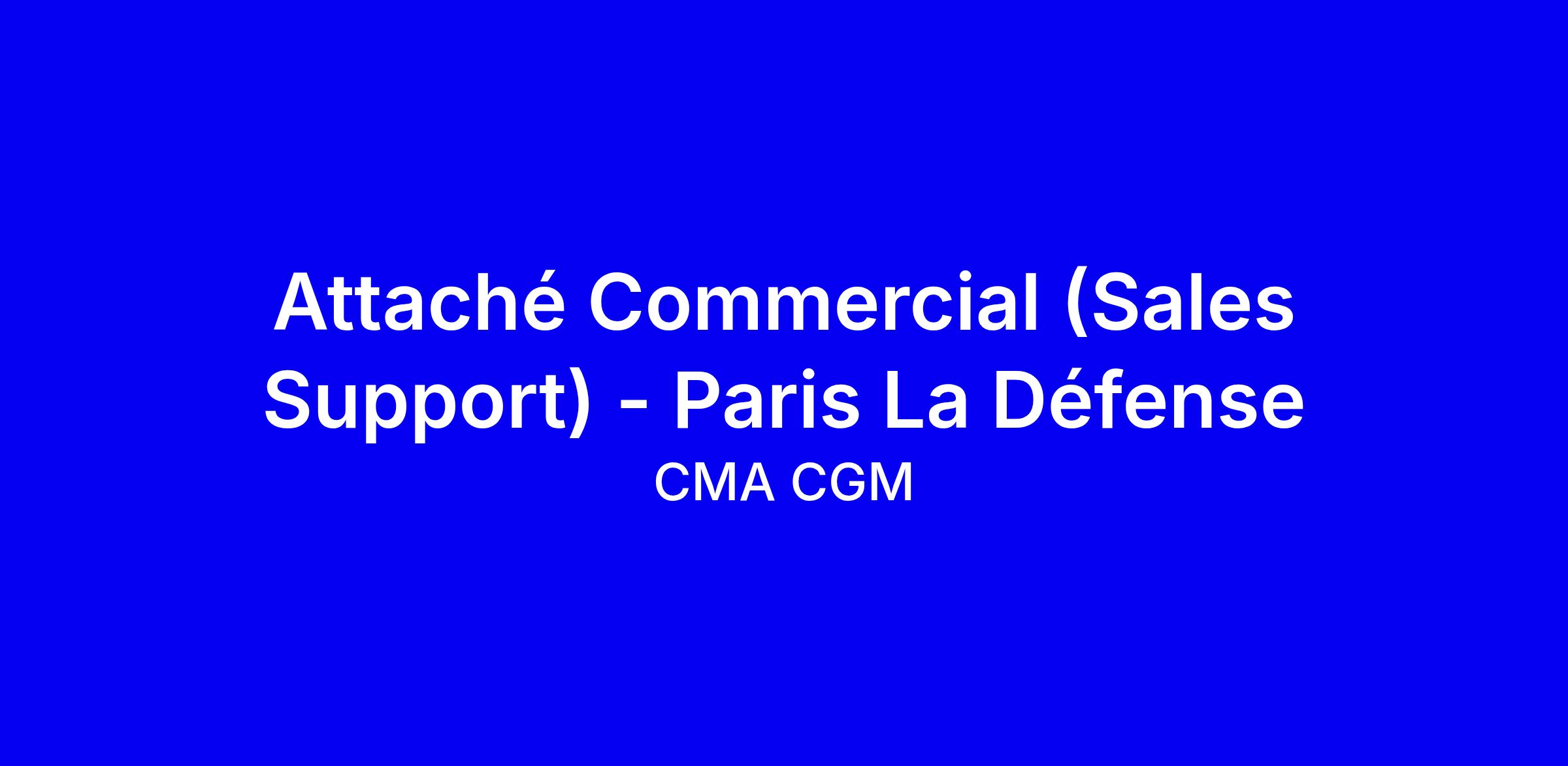 Cette offre d Attaché Commercial (Sales Support) à Paris La Défense vous place au cœur de l’agence CMA CGM Local Sales. Vous recevrez et qualifiererez les demandes clients, réaliserez les cotations et les offres tarifaires internes, et suivrez leur concrétisation tout en alimentant les bases de données et en accompagnant les clients sur les outils de pricing en ligne. Vous contribuerez à la résolution des litiges et veillerez au respect des procédures Qualité, Sûreté et Sécurité. Profil: formation commerciale ou logistique, première expérience en support des ventes dans le transport ou la logistique, excellente organisation, maîtrise des outils informatiques, sens du service client et esprit d’équipe; le français est indispensable et l’anglais est un atout. Pour postuler, personnalisez votre CV et lettre en valorisant vos résultats sur les cotations et le pilotage de dossiers, et montrez votre capacité à coordonner avec les équipes internes et à utiliser les outils CRM et pricing.