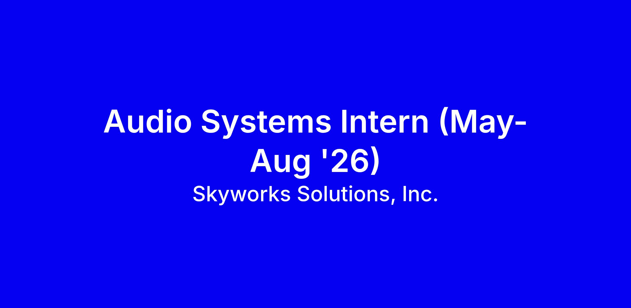 Skyworks Solutions is seeking an Audio Systems Intern for May to August 2026 in Hillsboro, OR, onsite. The role, within the SOC and systems applications teams, centers on analyzing audio and acoustic systems while collaborating with chip/SOC development, software, wireless, and AI/NN groups. You must be enrolled in an engineering or science program and bring hands-on test equipment experience (oscilloscope, DMM, DC power supplies) plus proficiency in Python, C or C++, and a solid grasp of audio systems and DSP fundamentals. Strong communication and documentation skills and the ability to learn company software quickly are essential. Tip: tailor your resume to show hands-on lab work with audio measurements and cross-functional projects in DSP and tooling. Equal opportunity employer; accommodations available.