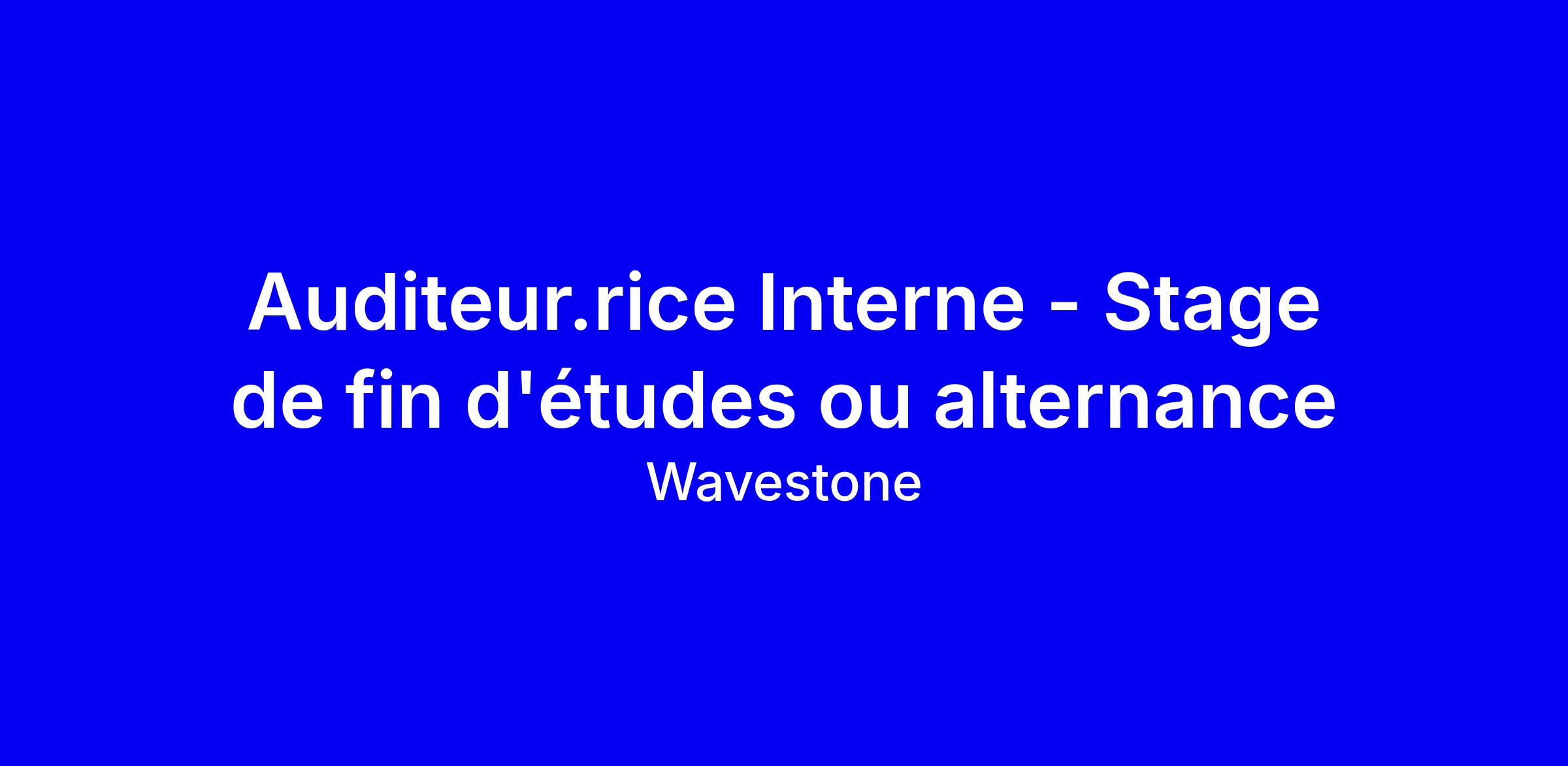 Ce poste d’Auditeur.rice Interne en stage de fin d’études ou alternance chez Wavestone à Puteaux vous place au cœur de l’audit interne d’un leader européen, avec une dimension internationale. Vous préparerez et exécuterez des travaux d’audit, analyserez les processus et contrôles internes, formulerez des recommandations et suivrez les plans d’action, en communiquant clairement avec les équipes auditées. Profil: étudiant(e) en dernière année Master 2 d’école de commerce, ingénierie ou université, spécialisation en audit finance ou contrôle interne, parfaite maîtrise de l’anglais, l’allemand est un plus. Début possible entre juin et septembre 2026, stage ou alternance avec potentiel CDI; pour optimiser votre candidature, valorisez vos projets d’audit, votre rigueur et votre esprit d’équipe, et montrez votre appétence pour l’international et l’impact.