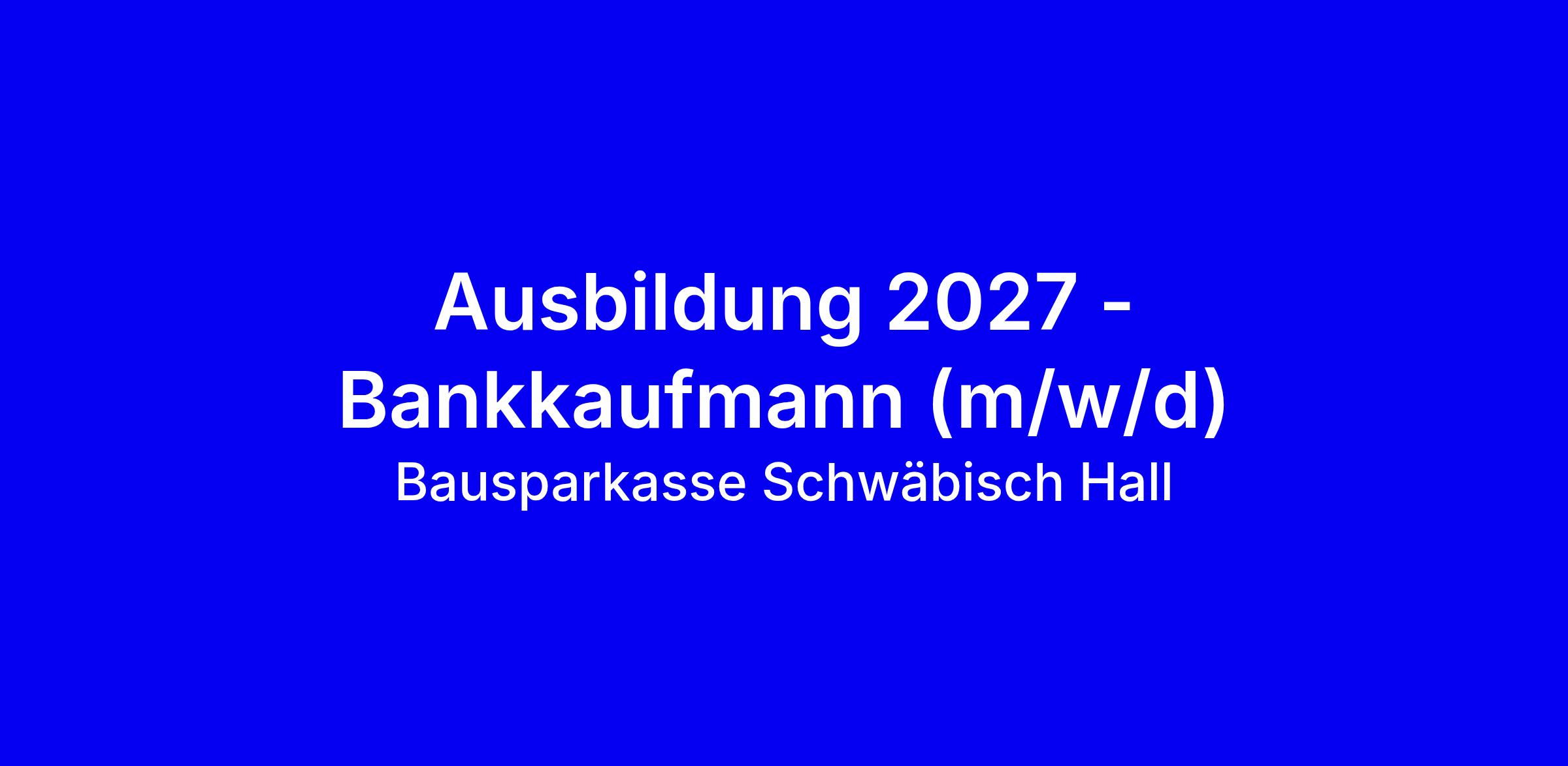 Schwäbisch Hall gehört zu den führenden Anbietern von Baufinanzierungen in Deutschland. Gemeinsam schaffen wir für unsere Kunden Heimat und bieten Auszubildenden Jobs, die mehr sind als nur ein Job – nämlich der zweitwichtigste Ort der Welt. Gerade gestalten wir den Wandel der Baufinanzierungsbranche mit und machen so Bauen und Wohnen nachhaltiger, smarter und individueller. Dies bietet viele Chancen und Herausforderungen - z.B. als Bankkaufmann (m/w/d).