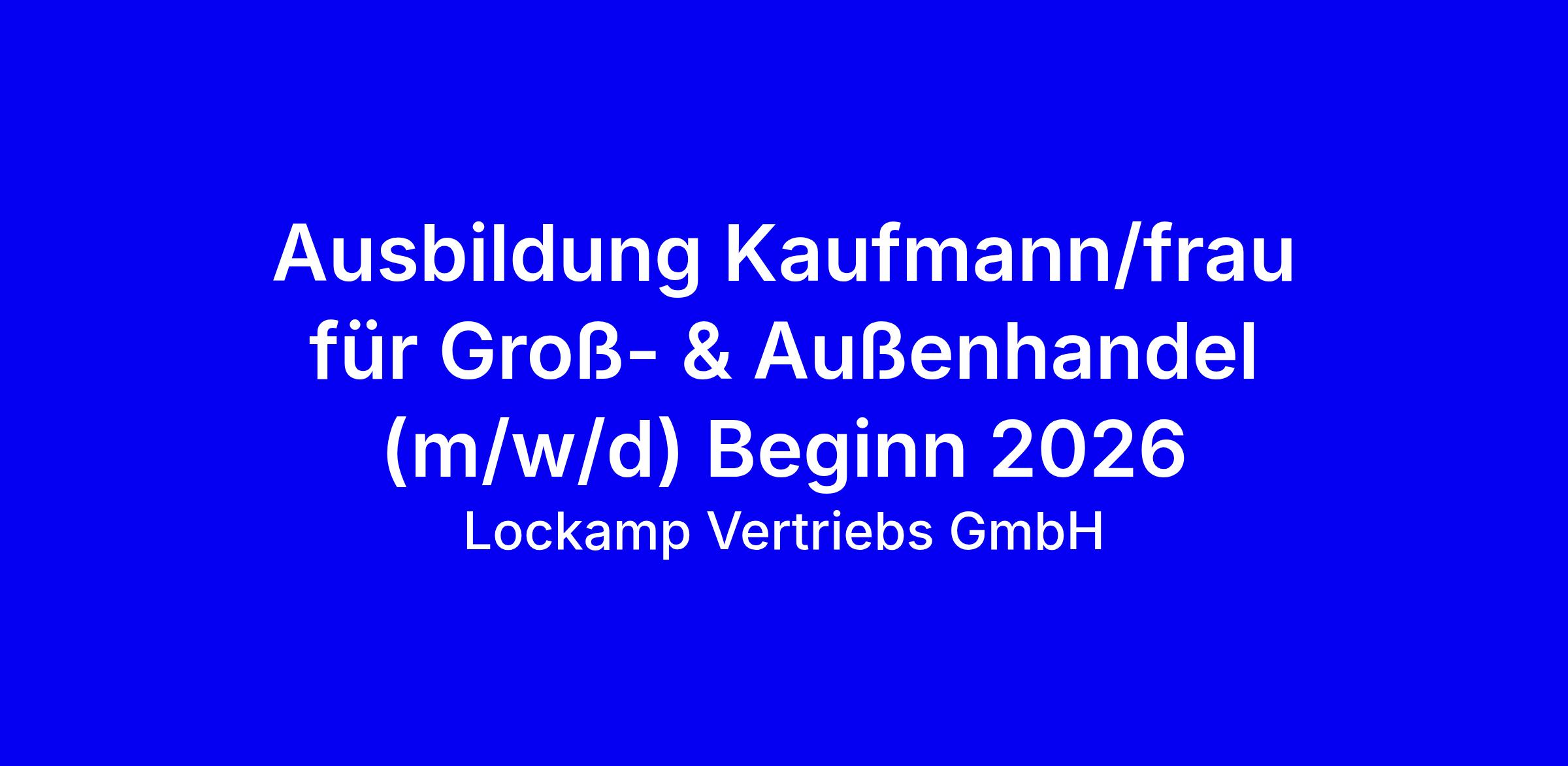 Lockamp Vertriebs GmbH sucht ab 2026 eine/n Auszubildende/n zum Kaufmann bzw. zur Kauffrau für Groß- und Außenhandel (m/w/d) in Vollzeit am Standort Gelsenkirchen. Als traditionsreicher B2B Großhändler im Ruhrgebiet durchläufst du alle kaufmännischen Abteilungen und unterstützt Einkauf, Vertrieb, Buchhaltung und Logistik, hast die Chance auf Produktentwicklungsprojekte und bist von Anfang an ein vollwertiges Teammitglied. Erwartet wird neben einem guten mittleren Schulabschluss oder Abitur hohe Eigenmotivation, Aufgeschlossenheit, Teamfähigkeit und Kommunikationsfähigkeit. Wir bieten einen sicheren Arbeitsplatz, individuelle Weiterbildung, festen Azubi-Ansprechpartner, eine angenehme Arbeitsatmosphäre, gute ÖPNV-Anbindung sowie Fahrtkostenzuschuss oder Deutschlandticket. Tipps: Betone Lernbereitschaft, Vielseitigkeit in Abteilungen, konkrete Projektideen, und verknüpfe deine Bewerbung mit unserem Traditionsunternehmen; bei Fragen schreibe an [email protected].