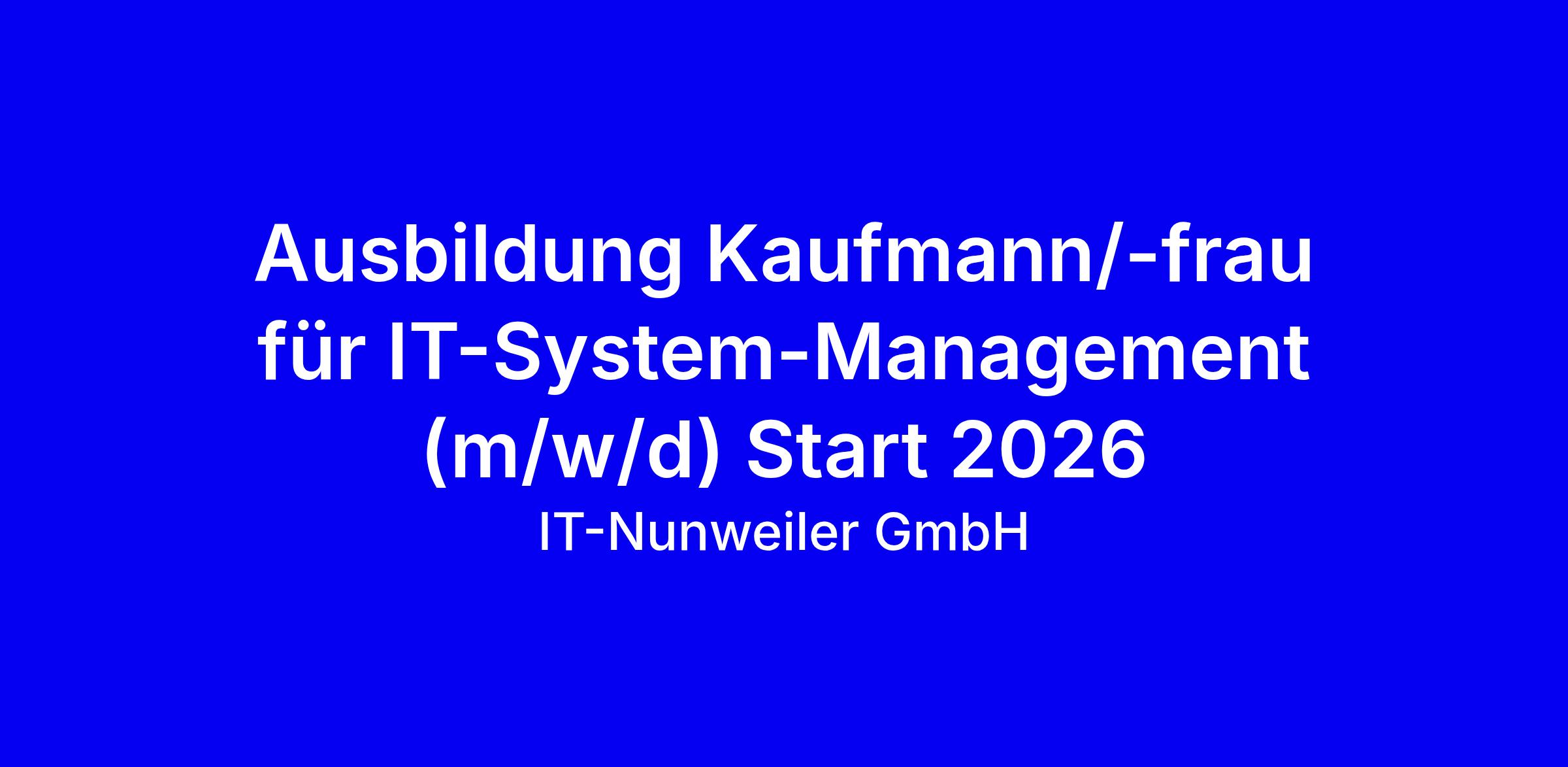 Seit 2015 betreut die IT-Nunweiler GmbH den Klein- und Mittelstand in allen Themen rund um die IT und ist einer der aufstrebendsten IT-Systemhäuser in und um Hannover. In den letzten 10 Jahren durften wir mehr als 300 begeisterte Neukunden gewinnen, wodurch wir Dir einen sicheren Arbeitsplatz gewährleisten können. Nun suchen wir Dich für eine Ausbildungsstelle, als Ausbildung Kaufmann/-frau für IT-System-Management (m/w/d), den ein vielfältiges Aufgabengebiet erwartet. Bei uns kannst du dich sowohl aktiv einbringen als auch in Ruhe und konzentriert arbeiten. Du bekommst die Möglichkeit, deine eigenen Kunden zu betreuen, eigene Projekte durchzuführen und dich individuell weiterzuentwickeln. Wenn du eine neue Herausforderung suchst und dabei deine Leidenschaft für IT, entweder in einer ruhigen und strukturierten Umgebung oder gemeinsam mit voller Tatendrang ausleben möchtest, dann bist du bei uns genau richtig.