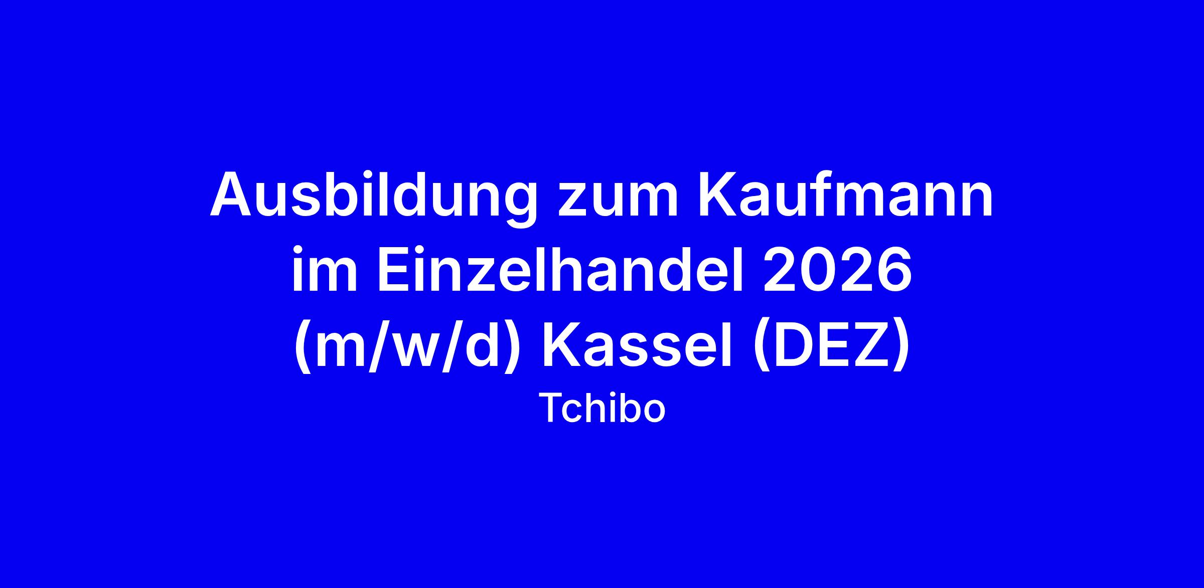 Die Ausbildung zum Kaufmann im Einzelhandel bei Tchibo in Kassel 2026 bietet eine vielseitige kaufmännische Ausbildung mit Einblicken in Marketing, Warenwirtschaft und Personalwesen, start am 01.08.2026, eingebettet in einer der rund 550 Filialen, mit Schwerpunkt auf Kaffee und Sortiment. Du lernst in Trainings, erhältst intensive Betreuung, profitierst von attraktivem Gehalt, 36 Urlaubstagen, Fahrtkostenzuschuss, Mitarbeiterrabatten und kostenloser Heißgetränke. Voraussetzungen: Schulabschluss, Lernbereitschaft, Freude am Umgang mit Menschen, Teamplayer, flexibel. So bewirbst du dich am schnellsten: online registrieren oder direkt im Shop bewerben, kein Anschreiben nötig. Bei Fragen wende dich an Dorit Kantorzik +49 40 6387 4595. ID 57883.