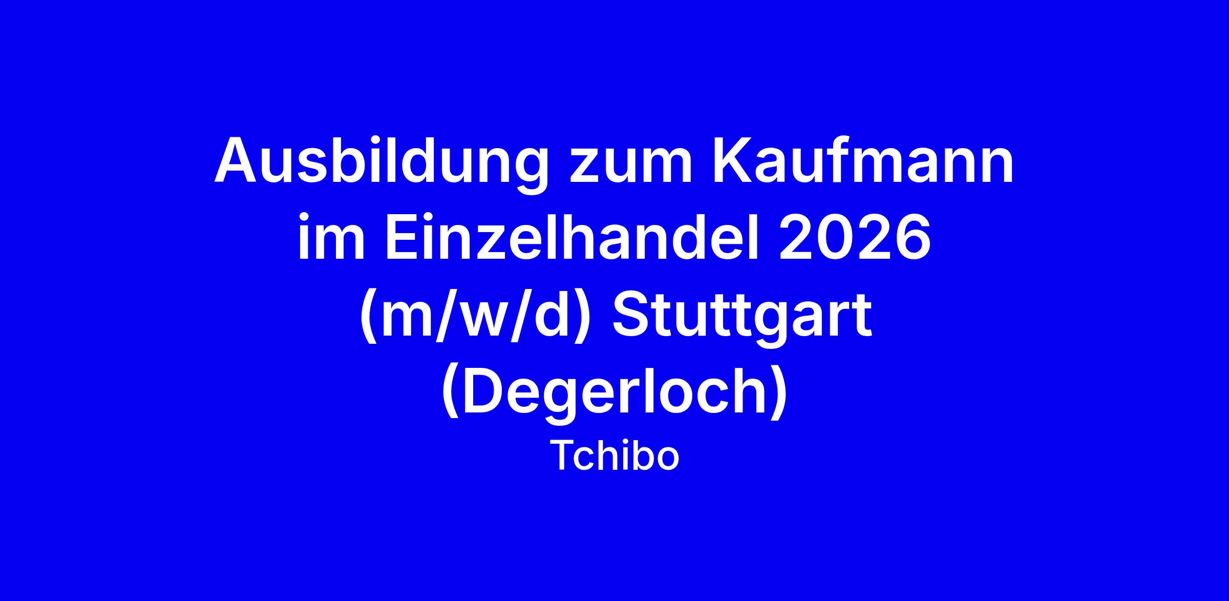 Willkommen bei Tchibo - einem der kreativsten Unternehmen Deutschlands. Während deiner Ausbildung zum Kaufmann im Einzelhandel 2026 (m/w/d) Stuttgart (Degerloch) in einem unserer rund 550 Shops und Stores kannst du jeden Tag Neues ausprobieren und dabei viel dazulernen. Zeig uns, was in dir steckt!