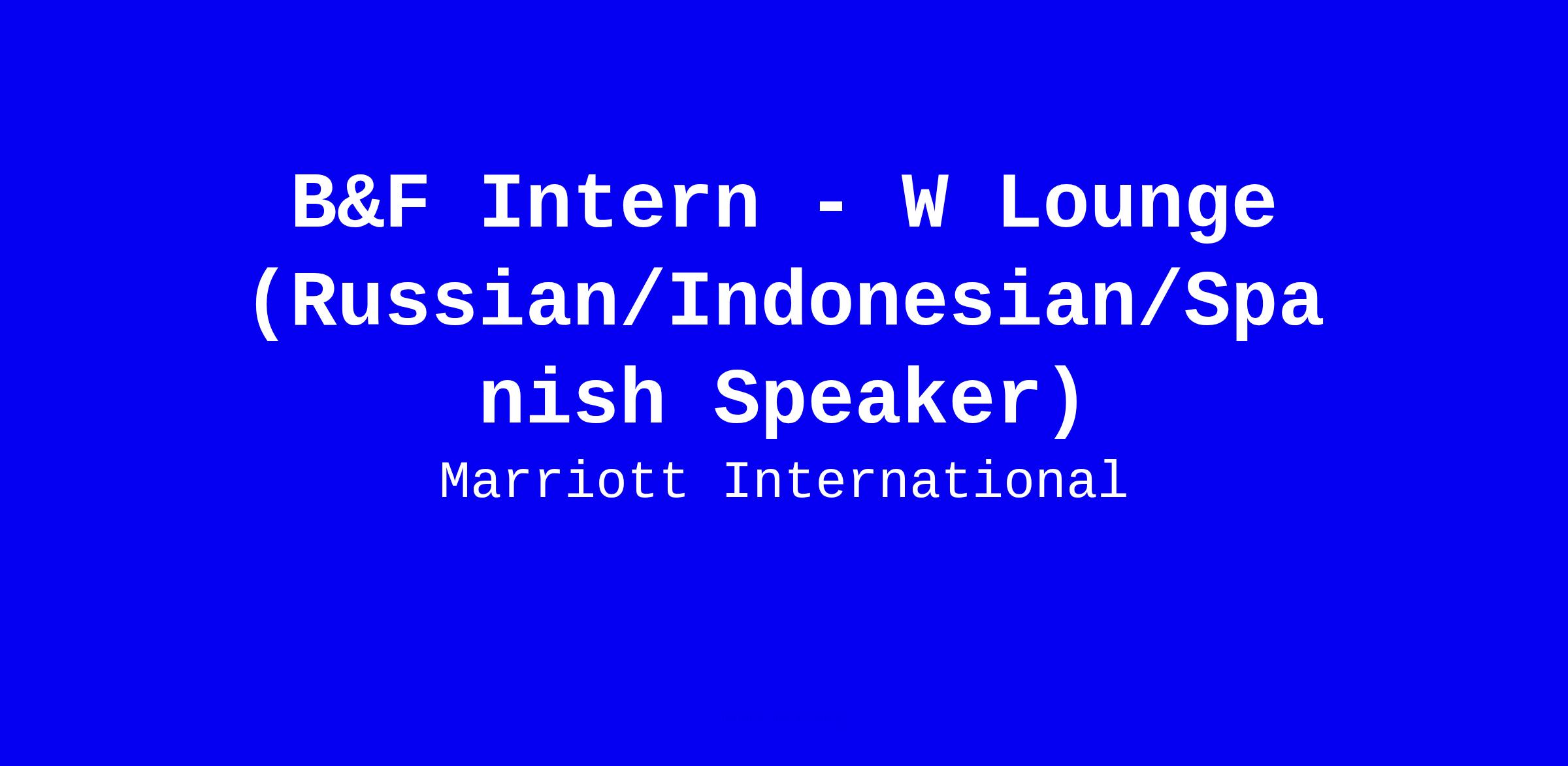 Marriott International is seeking a B&F Intern for the W Lounge in the United Arab Emirates, a full-time onsite internship that lets current college students dive into hotel operations through the Marriott Hotel Internship Program, gaining hands-on experience and a clear view of a career in hospitality. You’ll see how a hotel runs day to day, build cross-cultural guest service skills, and connect with a culture of growth and discovery. Fluency or strong proficiency in Russian, Indonesian, or Spanish is a plus for serving a diverse guest base. To apply effectively, tailor your resume to hospitality and teamwork, showcase relevant coursework, and demonstrate your eagerness to learn and contribute. Marriott is an equal opportunity employer.