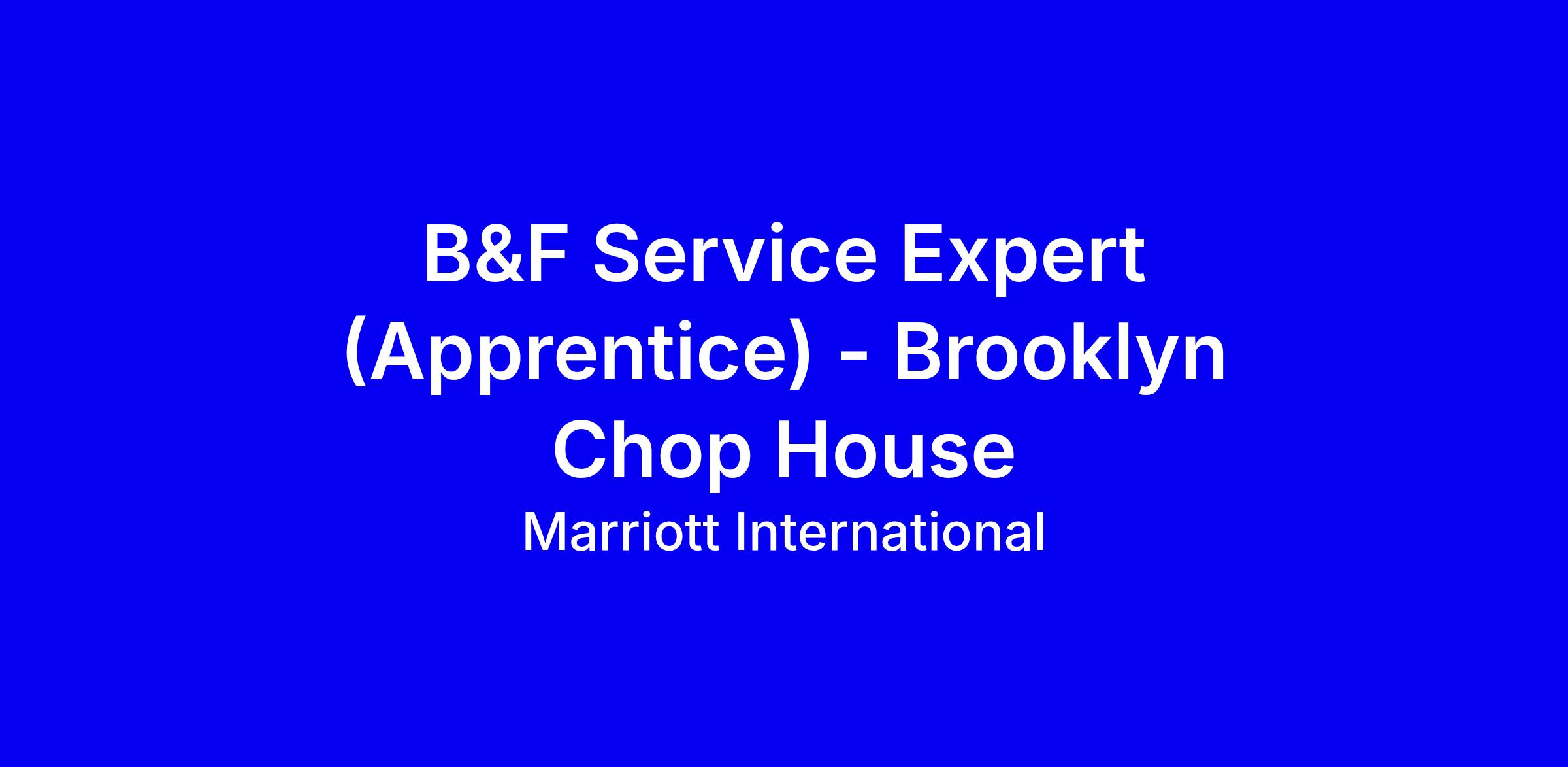 Marriott International seeks a B&F Service Expert (Apprentice) for Brooklyn Chop House in Abu Dhabi, a full-time onsite role focused on delivering a memorable guest experience through table setup, kitchen communication, guest service, and meticulous cleaning. Key success factors include safety, policy adherence, quality standards, and a professional appearance, with the ability to stand for long periods and lift up to 25 pounds without assistance (50 pounds with assistance). Requirements: high school diploma or GED and less than one year of related experience; no supervisory experience or license needed. Equal opportunity employer. Tips: tailor your resume to hospitality basics, highlight customer service and teamwork, demonstrate reliability, and show you learn quickly and follow standards.