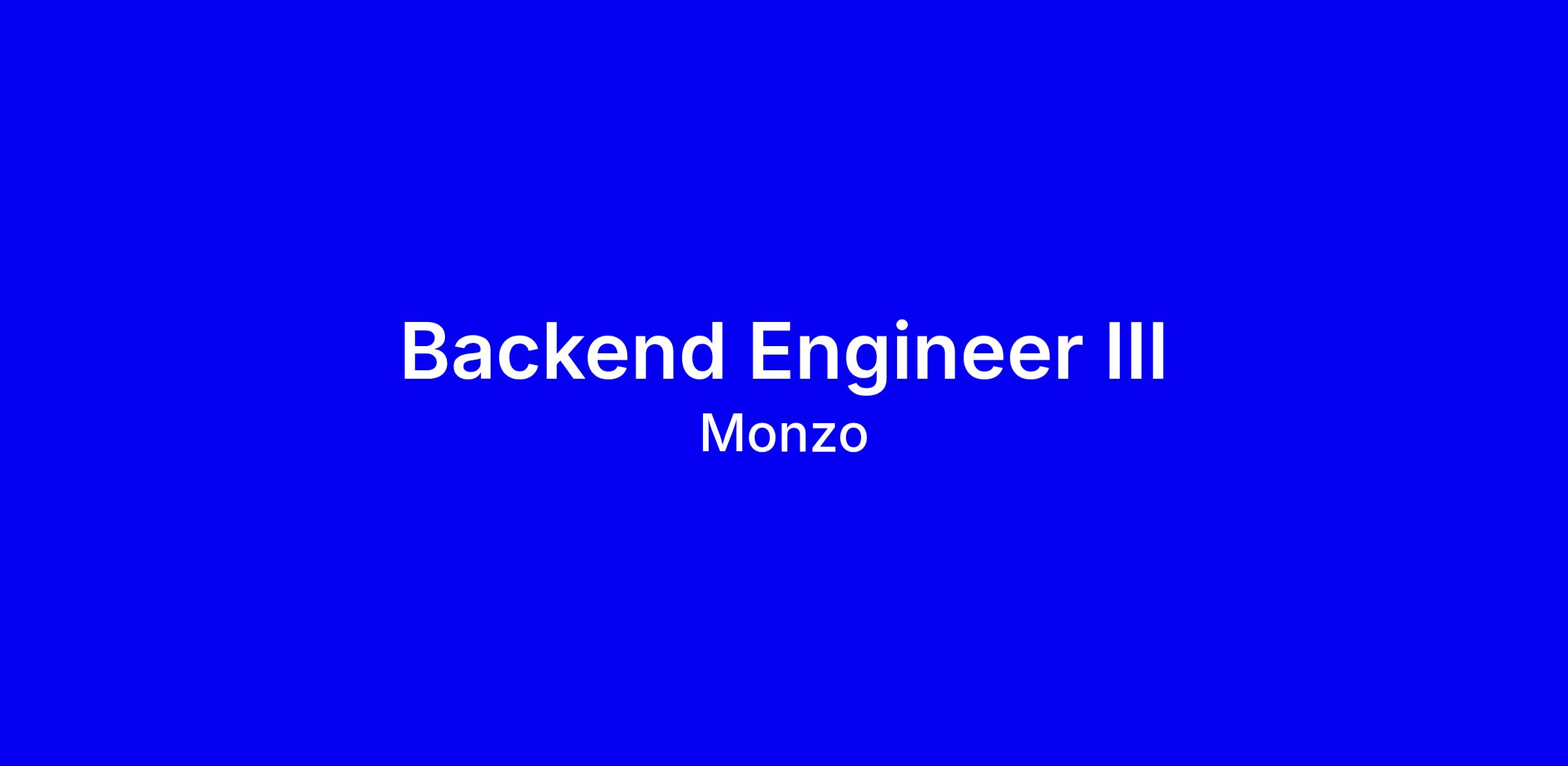 Monzo is looking for a Backend Engineer III to join a remote team that collaborates with squads in Core Banking, Payments and Fincrime to build an in-house banking platform. You’ll work with Go, Cassandra, Kafka, Kubernetes, Docker, Envoy, AWS and GCP, alongside product and design teams, with ML and security opportunities. The role supports distributed working with occasional London meetings, and offers visa sponsorship, relocation assistance, a £1k learning budget plus stock options. To apply well, show how you ship reliable distributed systems that deliver customer outcomes, demonstrate a product mindset and data led decisions, and excel in cross functional collaboration; interviews include initial call, take-home or pair programming, and final system design and behavioral interview.