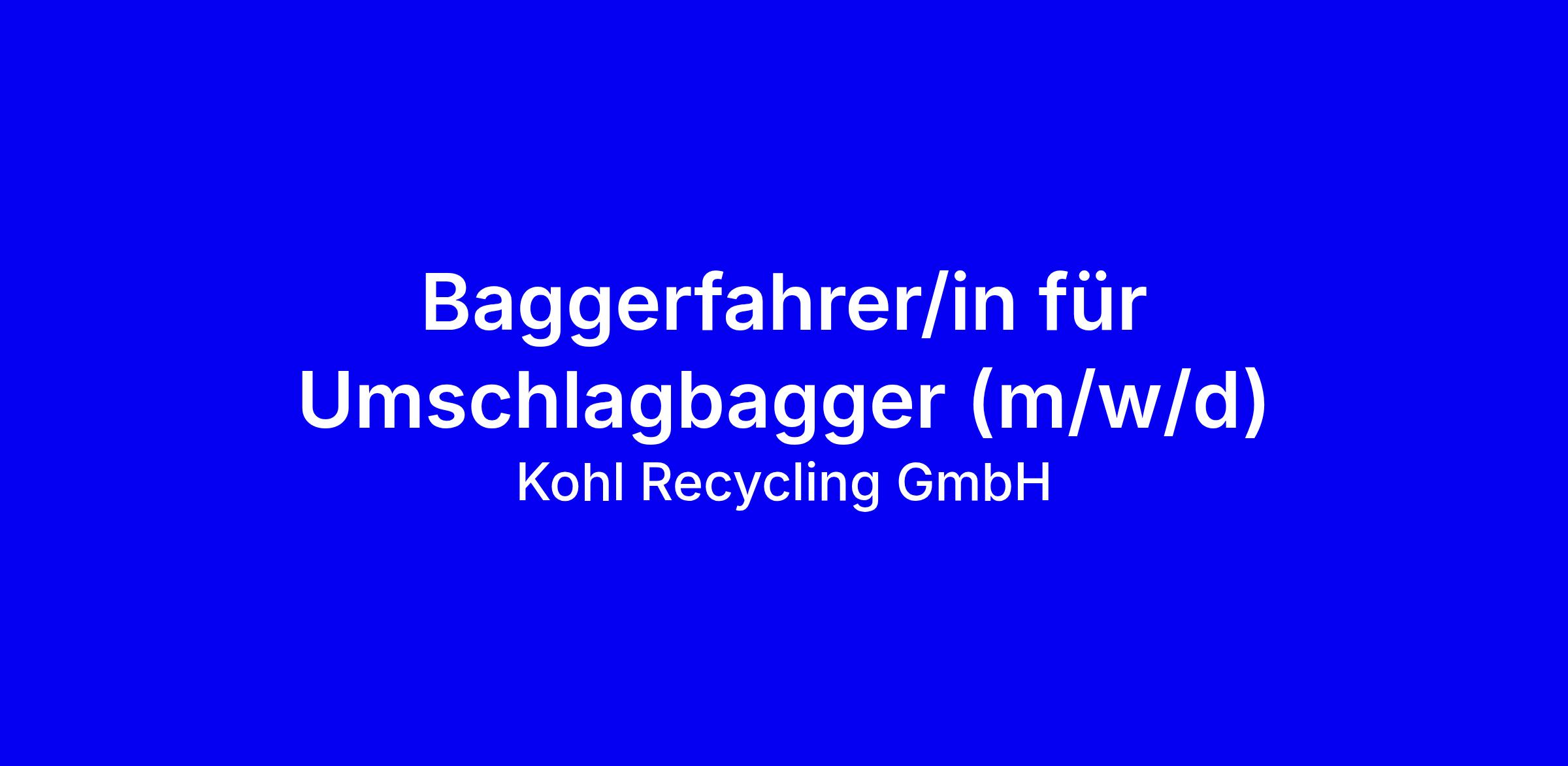 Die Stelle Baggerfahrer/in für Umschlagbagger (m/w/d) bei Kohl Recycling GmbH in Bramsche ist eine unbefristete Vollzeitposition in einem familiengeführten Mittelstandsunternehmen der Recyclingbranche. Seit 1953 betreibt Kohl Recycling Stahlschrott, Metalle und Abfälle sowie einen leistungsstarken Containerdienst und setzt auf eine zukunftsweisende Kreislaufwirtschaft. Zu den Aufgaben gehören das Beschicken und Entladen von LKWs und Schiffen, eigenverantwortliches Führen der Umschlaggeräte sowie Wartung der Maschinen. Erwartet wird mehrjährige Berufserfahrung, idealerweise in der Recyclingbranche, sowie Leistungsbereitschaft, Zuverlässigkeit, Teamfähigkeit und sorgfältiger Umgang mit den Maschinen. Wir bieten flexible Arbeitszeiten, 30 Tage Urlaub, Weihnachtsgeld, betriebliche Altersvorsorge, Gesundheitsleistungen, modernes Arbeitsumfeld und gute Entwicklungsmöglichkeiten. Bewerben Sie sich mit Lebenslauf und Zeugnissen und zeigen Sie, warum Sie passen.