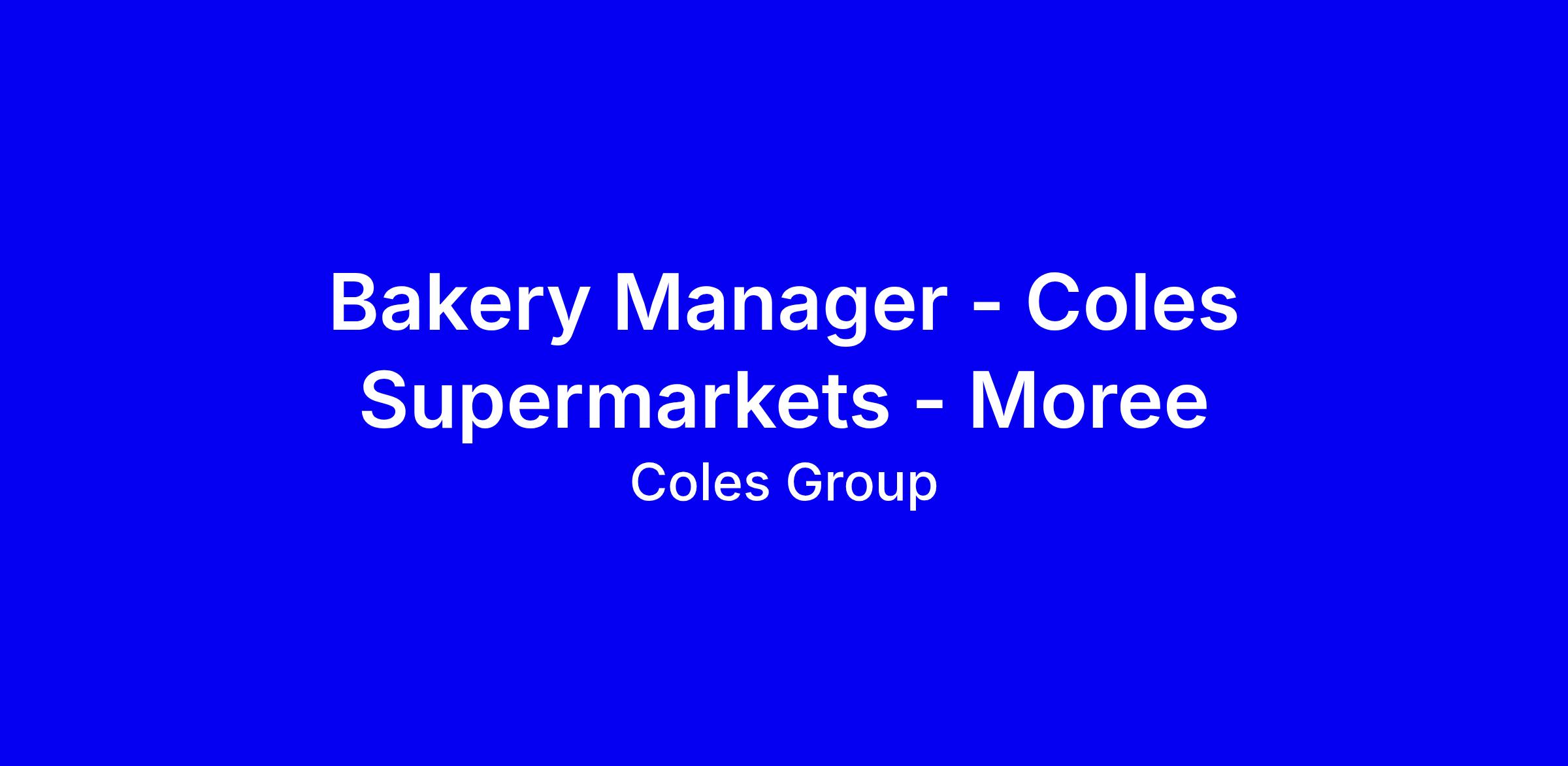 Coles Moree is seeking a full-time Bakery Manager who will own the day-to-day running of the bakery department, report to the Store Manager, and help deliver a store that is welcoming. You’ll lead a fast-paced team to hit sales targets, manage costs and rosters, maintain stock rotation, waste and quality control, and foster a one-team culture prioritising health, safety and wellbeing. Benefits include 5% staff discounts year round, occasional double discounts, mythanks recognition, leadership training, novated leases, a share plan and paid parental leave. To apply, tailor your resume to bakery leadership and customer experience; apply via Coles Careers with Job ID 179704, and mention your commitment to diversity and inclusion.