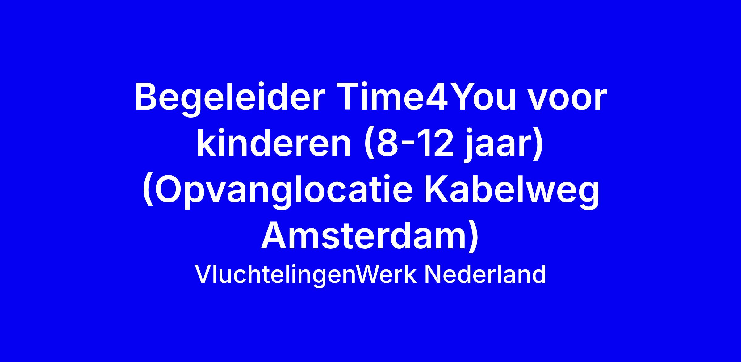 Time4You zoekt een betrokken begeleider voor kinderen van 8-12 jaar in opvanglocatie Kabelweg in Amsterdam. Je werkt wekelijks met een team, bereidt thema’s en werkvormen voor, faciliteert activiteiten en zorgt dat kinderen vragen en verhalen kunnen delen in een veilige, positieve omgeving. Taken: wekelijks voorbereiden, aanwezig zijn bij de bijeenkomst op dinsdag 15:00-18:00 (vier uur per week) en het bijhouden van presentielijsten. Belangrijke eigenschappen: affiniteit met kinderen, betrouwbaarheid, teamgerichtheid, organisatorisch talent en plezier in activiteiten; bereid 6 maanden te blijven en VWN-trainingen te volgen. In je sollicitatie licht je concrete voorbeelden van samenwerking, initiatief en betrokkenheid bij kinderrechten toe. Solliciteer door je gegevens achter te laten en een korte motivatie toe te voegen.