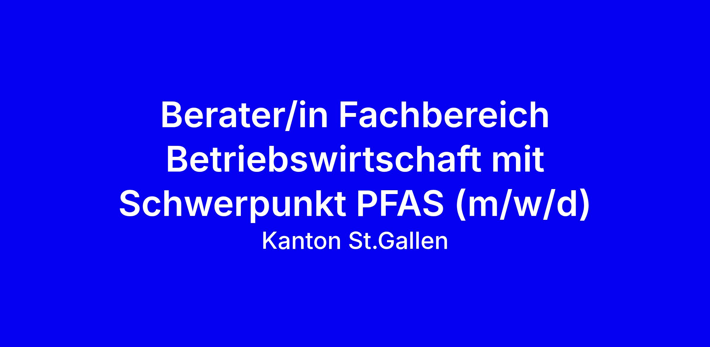 Der Kanton St.Gallen sucht ab März 2026 bis Dezember 2028 eine/n Berater/in Fachbereich Betriebswirtschaft mit Schwerpunkt PFAS (m/w/d) am Landwirtschaftlichen Zentrum St.Gallen in Salez, 50-100 Prozent, befristet mit Aussicht auf Festanstellung und onsite-Arbeit. Sie beraten landwirtschaftliche Einzelbetriebe zu PFAS Fragestellungen, führen Beratungen in betriebswirtschaftlichen und agrarrechtlichen Themen durch und bauen Arbeitsgruppen sowie Projekte zum PFAS-Thema auf. Gesucht wird eine Person mit abgeschlossenem Studium als Agronom/in ETH/FH oder vergleichbare Ausbildung, Berufserfahrung in qualifizierter Beratung, vertieften Kenntnissen in landwirtschaftlicher Betriebswirtschaft sowie im Agrarrecht und Führungserfahrung. Wir bieten hohe Selbstständigkeit, ein kollegiales Umfeld, flexible Arbeitszeitmodelle, gleitende Arbeitszeiten und Homeoffice-Möglichkeit. Bewerben Sie sich mit klarem PFAS-Fachprofil, relevanten Projektreferenzen und aussagekräftigen Unterlagen; weitere Auskünfte erteilen Susanne Schilling und Walter Appert.