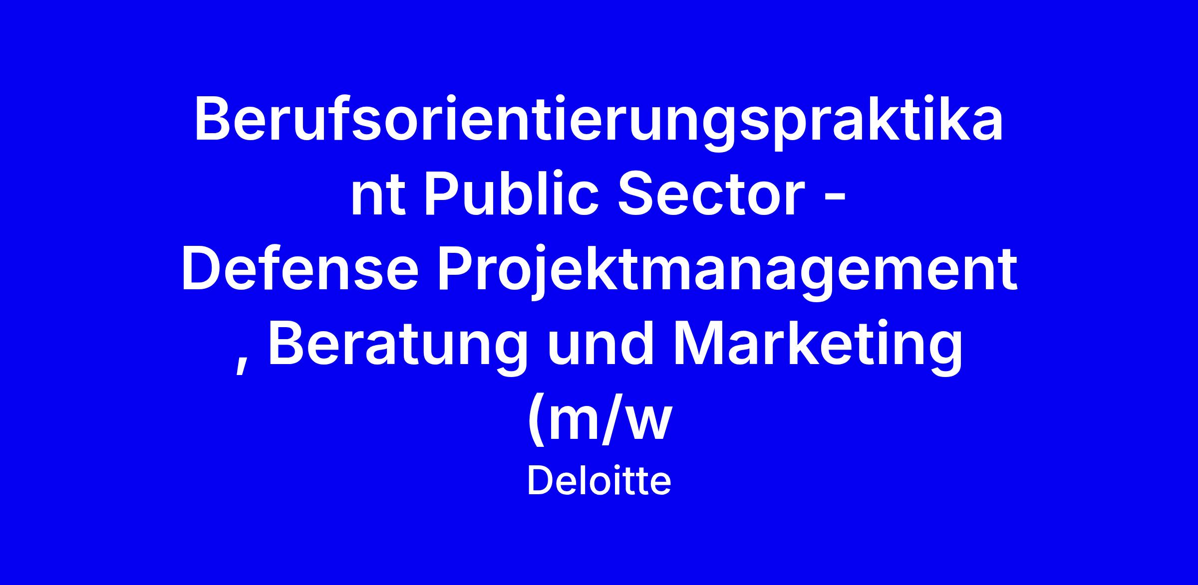 Du willst im Bereich Consulting – Public Services die Digitalisierung und Modernisierungsanstrengung im Bereich Defense vorantreiben? Sichere unseren gemeinsamen Erfolg und mach mit uns den Unterschied: als Berufsorientierungspraktikant Public Sector - Defense Projektmanagement, Beratung und Marketing (m/w/d).