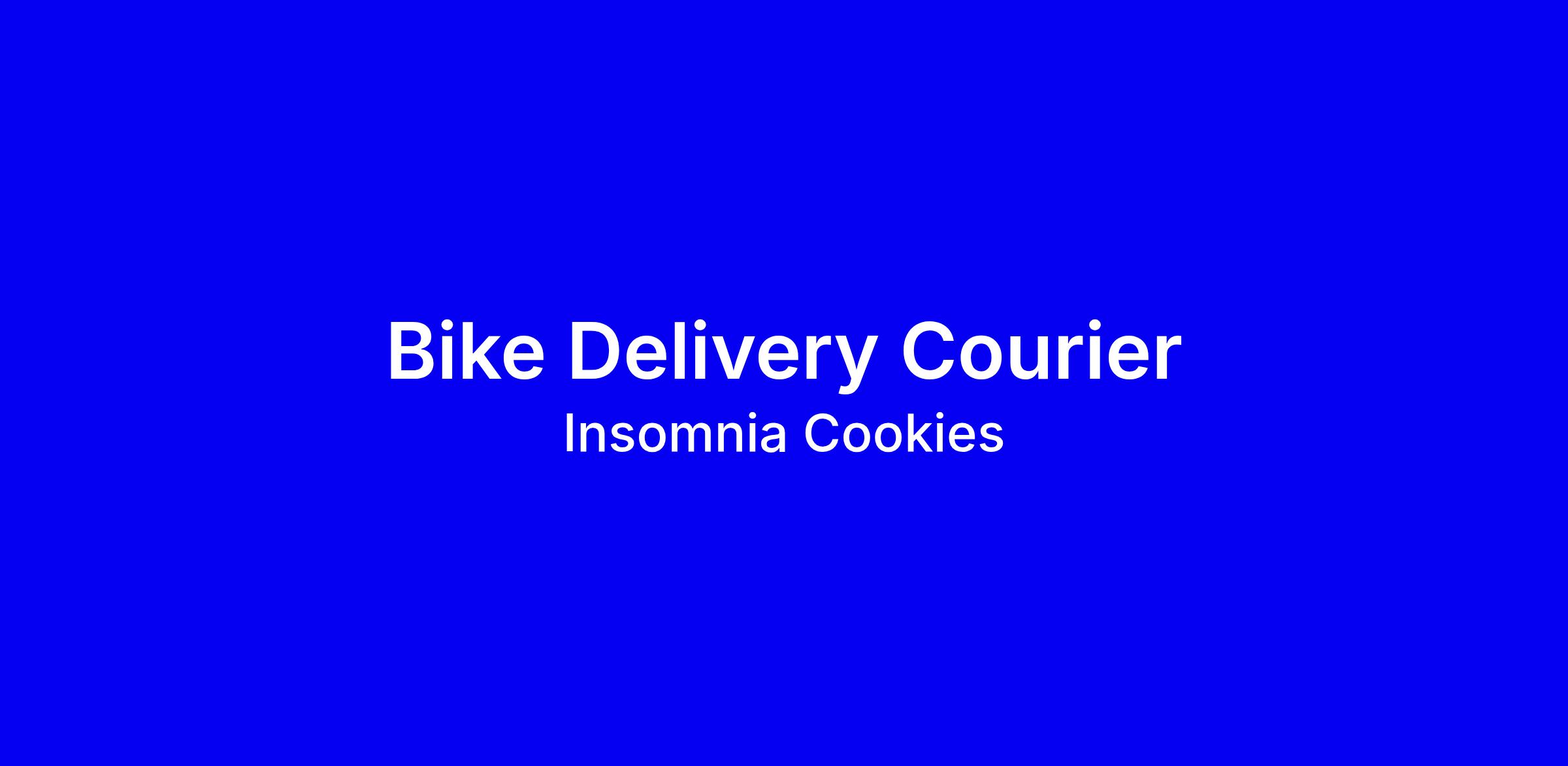 Insomnia Cookies is seeking a Bike Delivery Courier for our Midtown East store in New York. You’ll be boots on the ground, the face fans see, delivering cookies safely. Responsibilities include checking orders for quality, delivering promptly, providing friendly service, and updating customers via the delivery app. Highlights include $18 per hour plus tips, daily pay, paid time off, flexible part time schedules, pet coverage, and discounts on fuel and car maintenance, plus free cookies with every shift. To apply, emphasize reliability, quick route knowledge, and strong customer service in your note, and confirm you own a non motorized bicycle, a smartphone, eligibility to work in the United States, and that you are 18.