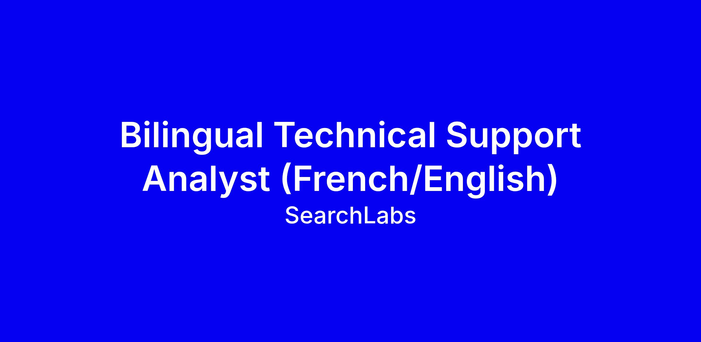 Role: Technical Bilingual (French/English) Support Analyst – Level 1/2