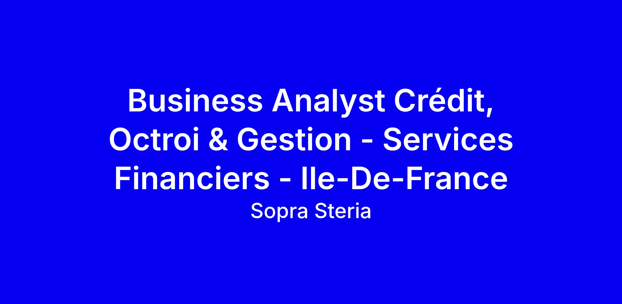 Cette offre de Sopra Steria recrute un Business Analyst Crédit Octroi et Gestion pour des projets de crédits bancaires immobiliers et corporate en Ile-de-France, dans le cadre de la transformation digitale des établissements financiers. Le candidat idéal a 5 à 8 ans d’expérience dans le secteur bancaire sur des solutions de crédit, maîtrise la modélisation et la rédaction de cahiers des charges, et sait concevoir des solutions bout en bout. Il anime des ateliers, coordonne le client et les équipes, et définit la stratégie de tests avec traçabilité des exigences. Pour postuler, mettez en avant vos expériences d’octroi et de gestion du crédit, vos connaissances réglementaires et vos outils (Sopra Banking, Cassiopae, Temenos). Avantages et opportunités via Sopra Steria Academy, télétravail partiel et packages attractifs.