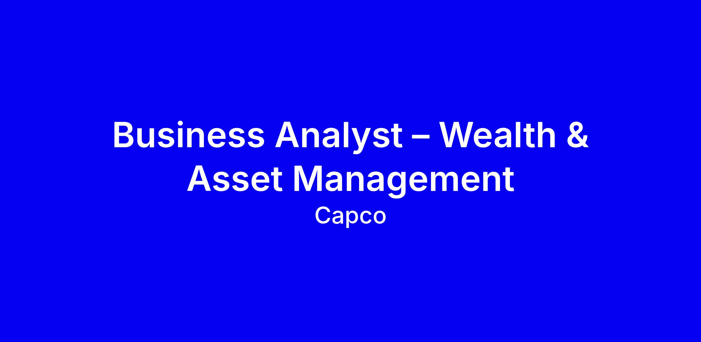 Business Analyst – Wealth & Asset Management