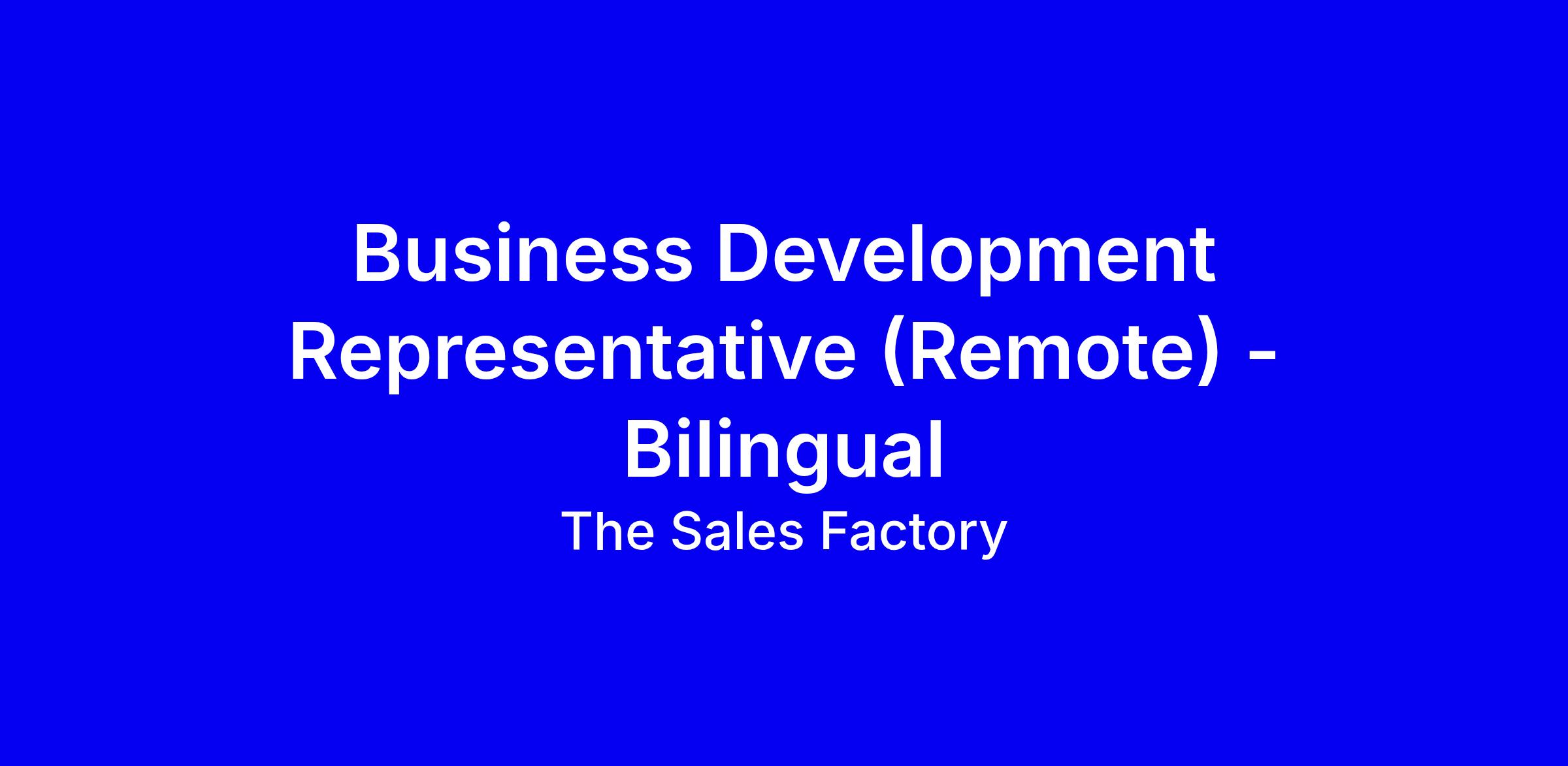 ****Fluency in French and English is strongly preferred. Preference will be given to fully bilingual candidates, as this role supports French-speaking customers and prospects across Quebec and Eastern Canada.****About The Sales FactoryAt The Sales Factory, we’re building the future of B2B sales! We partner with high-growth companies to help them connect with their ideal customers and build revenue pipelines that drive real results. We’re proud to be ranked #2 in the world for outsourced sales (out of 160 companies globally) and we’re just getting started. Our clients include some of the largest tech, banking, and manufacturing companies in the world, and we have ranked on the Fastest Growing Companies list three years in a row.Since our founding in 2018, we’ve grown into an award-winning, global team supporting some of the fastest-growing tech companies in the world. Our secret? A mix of data-driven strategy, cutting-edge AI technology, and a team of curious, motivated people who love to learn. We’re a remote-first company, hiring across North America. Work wherever you’re happiest (as long as you’ve got strong Wi-Fi). The OpportunityAs a Business Development Representative (BDR), you’ll be at the front lines of growth — identifying potential customers, sparking conversations, and setting up meetings for our clients’ sales teams .You don’t need to be a sales expert (yet). We’ll teach you everything you need to know through hands-on training and real-time coaching. This is the perfect place to kickstart your career in tech sales!
