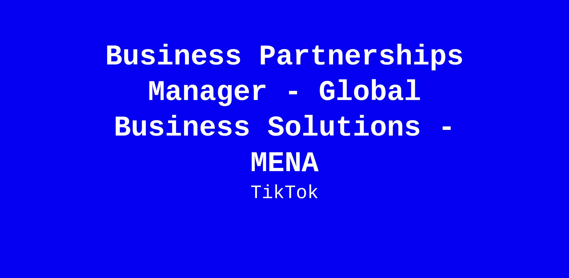 TikTok is hiring a Business Partnerships Manager for Global Business Solutions in MENA, onsite in Dubai. Lead vertical strategy, build brand partnerships, and educate clients on TikTok advertising to drive revenue. Bring deep digital media knowledge, strong industry ties, and comfort with a fast moving startup. Deliver consultative media plans from business case to KPI and ensure top client servicing. Apply with measurable revenue growth, clear vertical expertise, and examples of winning narratives plus cross functional collaboration. Include a concise cover letter with a vertical success story and how you would position TikTok.