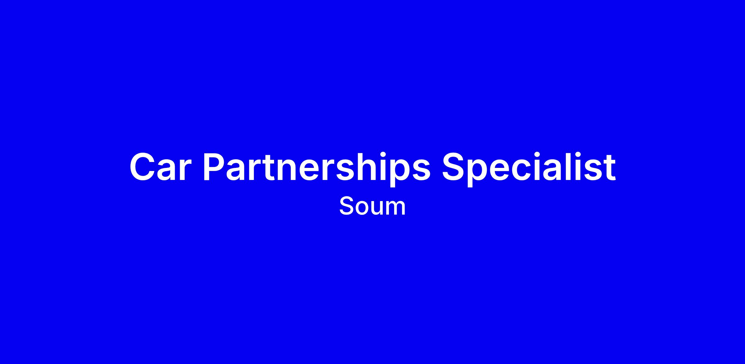 Soum seeks a Car Partnerships Specialist to grow our Cars category by managing automotive partnerships, expanding supply through dealerships, fleets, and rental companies in Saudi Arabia. This remote UAE role focuses on identifying new partnerships, onboarding partners, maintaining relationships, coordinating with Operations, Pricing and Marketing, negotiating terms, and tracking performance via pipeline updates. Requirements include at least one year in partnerships or automotive roles, strong communication and relationship skills, understanding of the Saudi automotive ecosystem, and the ability to manage multiple stakeholders. To apply, highlight onboarding wins, quantify revenue impact, show Saudi market knowledge, and align with Sunday to Thursday Saudi hours.