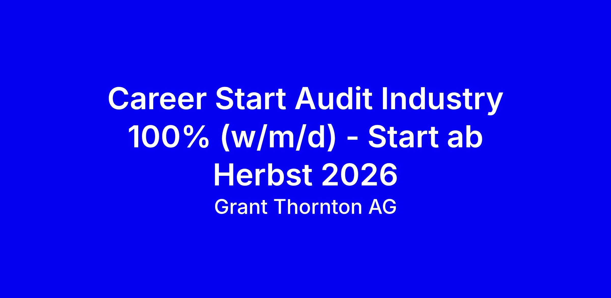 Career Start Audit Industry 100% (w/m/d) - Start ab Herbst 2026