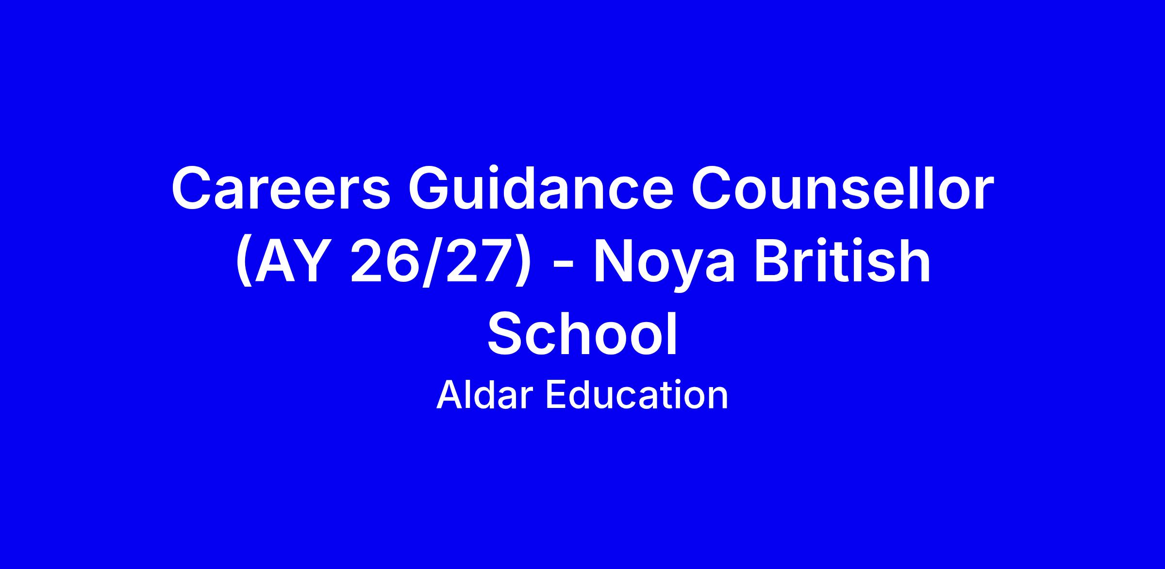 Aldar Education are currently seeking an outstanding Careers Guidance Counsellor for Noya British School in Abu Dhabi to join in Academic Year 2026/2027.