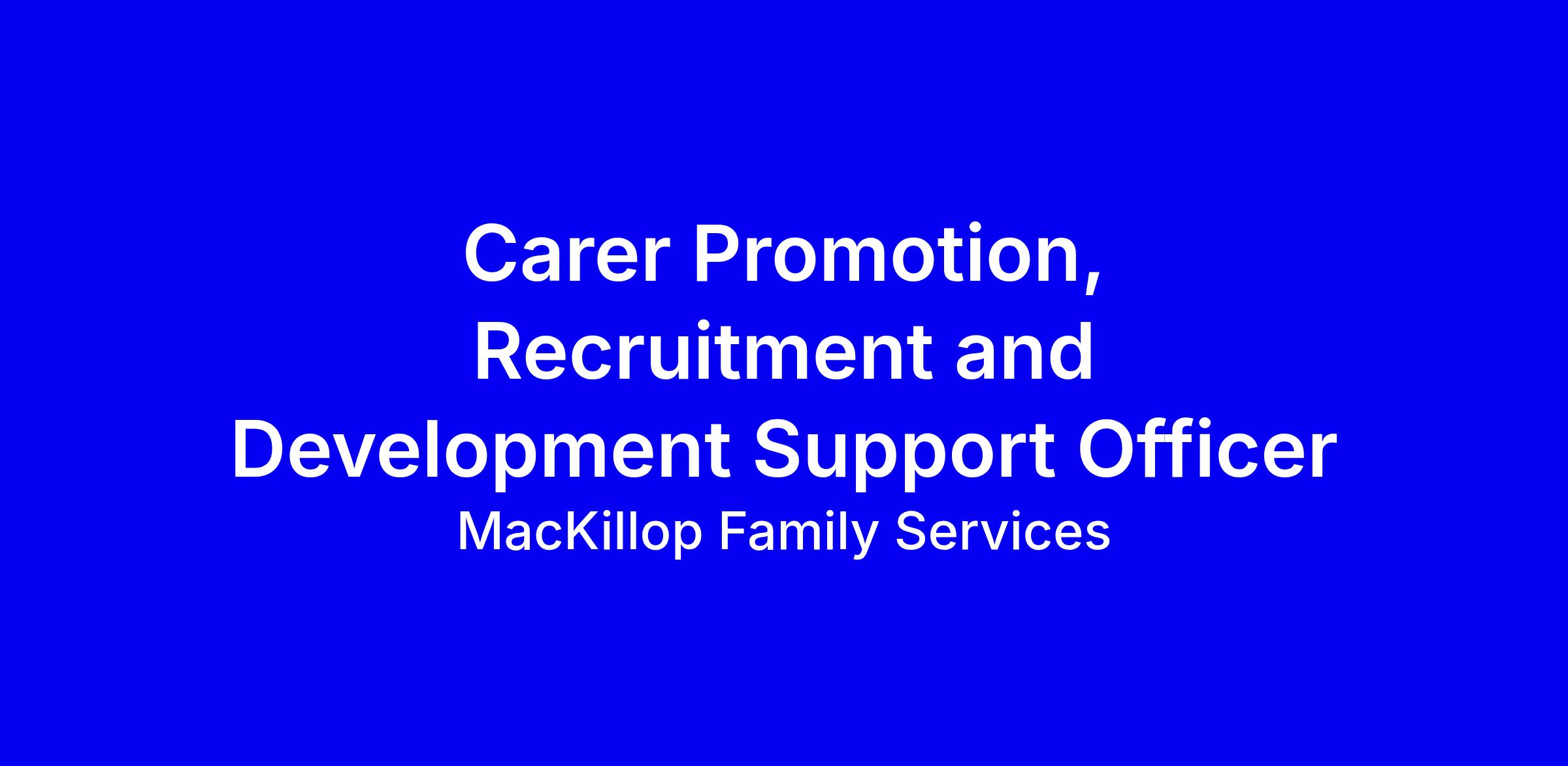 The Carer Promotion, Recruitment and Development Support Officer will assist in the development and implementation of a clear new strategic plan to promote and attract foster care applicants in the Pilbara using contemporary and alternative approaches, A component of this role is to assist with recruitment, development and retention of foster carers, Provide support to the local team around carer compliance systems to ensure MacKillop is working effectively and adheres to the recruitment and authorisation processes.