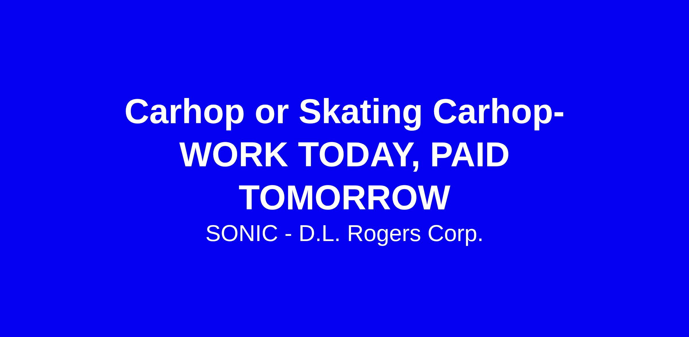 You are applying for work for a franchisee D.L. Roger Corp of Sonic, not Sonic Corporate, or any of its affiliates. If hired, the franchisee will be your only employer. Franchisees are independent business owners who set their own wage and benefit programs that can vary among franchisees.