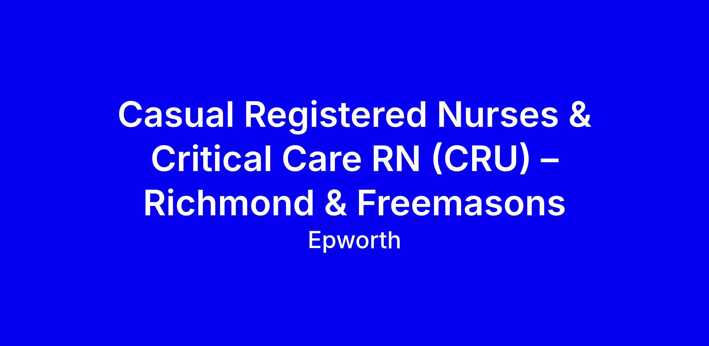 Epworth HealthCare (Epworth) seeks casual Registered Nurses with acute experience, to join our high performing and highly valued Central Resource Unit (CRU).
