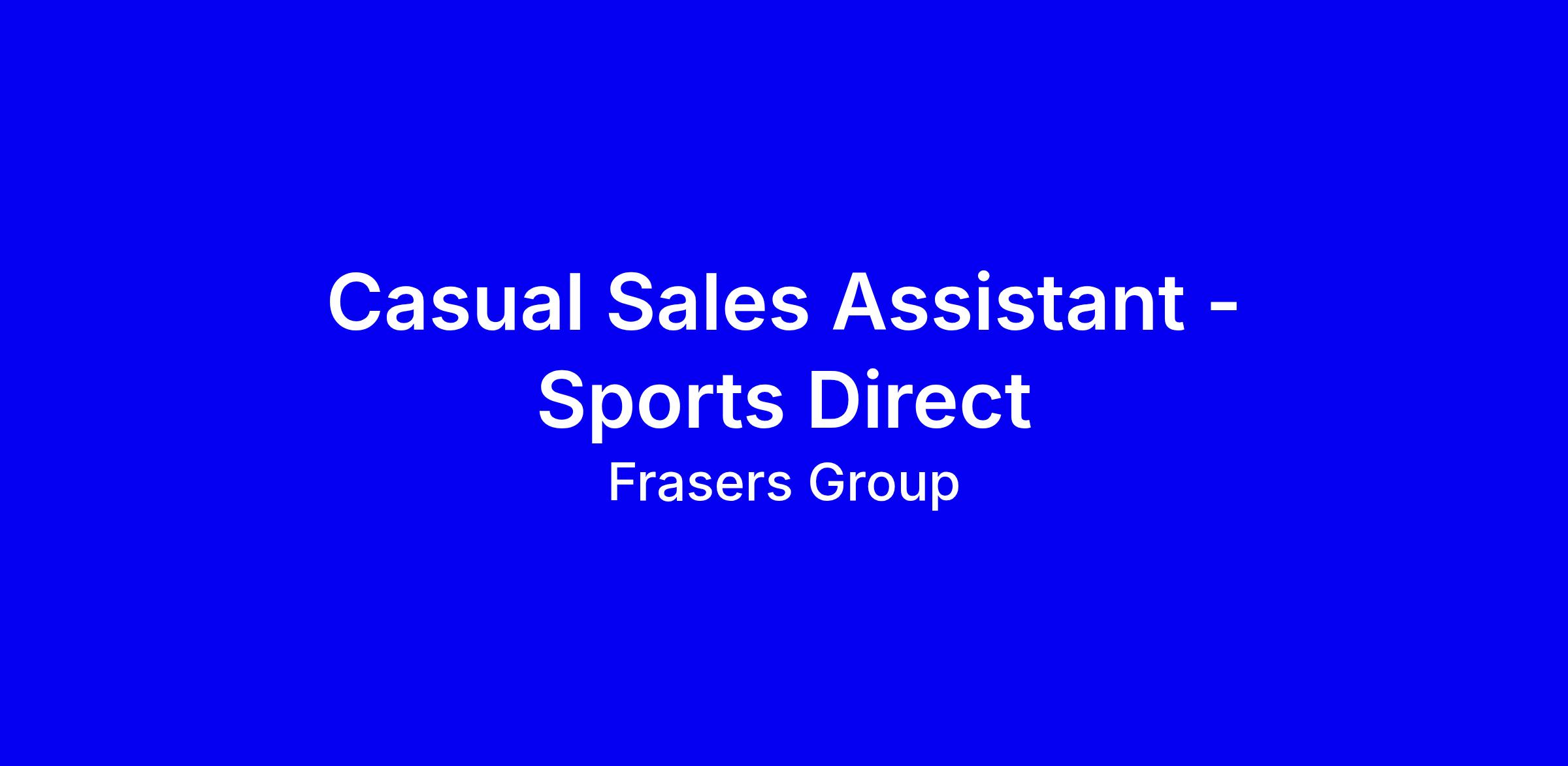 From day one, you’ll receive a full in-store induction. As you progress, you’ll have access to internal development pathways, including Team Leader programmes and nationally recognised qualifications, supporting your growth within Sports Direct and the wider Frasers Group.