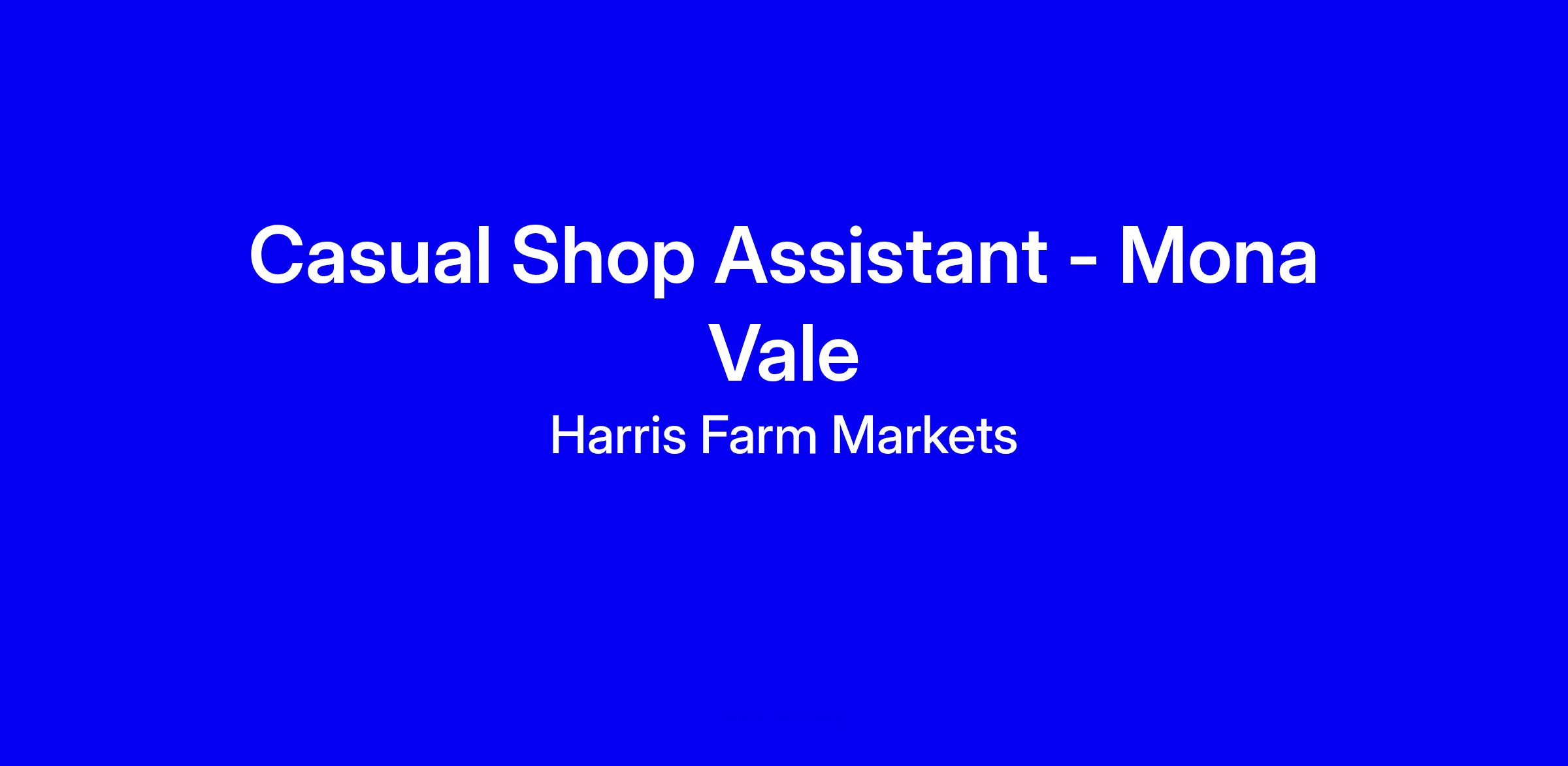 Harris Farm Markets in Mona Vale is seeking a full-time, on-site Shop Assistant who is bubbly, outgoing and ready to help reconnect customers with the natural joys of food. You will deliver excellent customer service, maintain fresh, appealing displays, manage signage and pricing, stock shelves and dairy cases, support back stock, and help with food crew sampling while upholding health and safety standards and keeping the store safe and tidy. The right person is a team player with flexible availability across seven days and a genuine love of food. Preferences go to those with fruit and vegetable shop experience. To apply, tailor your CV to highlight customer service, stock management and safety, and note your weekend availability. Please note the advertisement may close earlier if sufficient applications are received.