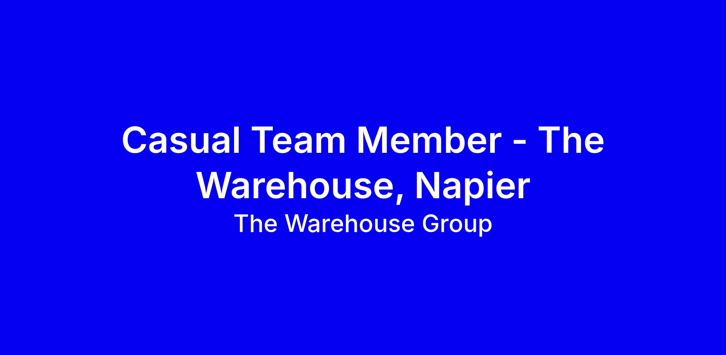 Casual Team Member at The Warehouse Napier offers variety and daily shifts across departments, a customer facing role with potential to learn and progress. No set weekly hours, so reliability and flexibility are key; you'll need to stand for long periods, possibly climb ladders, and do some heavy lifting. Experience in retail or hospitality helps, but a positive attitude and willingness to learn matters most. If you're keen on a fast paced, supportive team and development opportunities at New Zealand's largest retailer, apply with a short note on your availability, your customer service strengths, and your willingness to cross train across departments.