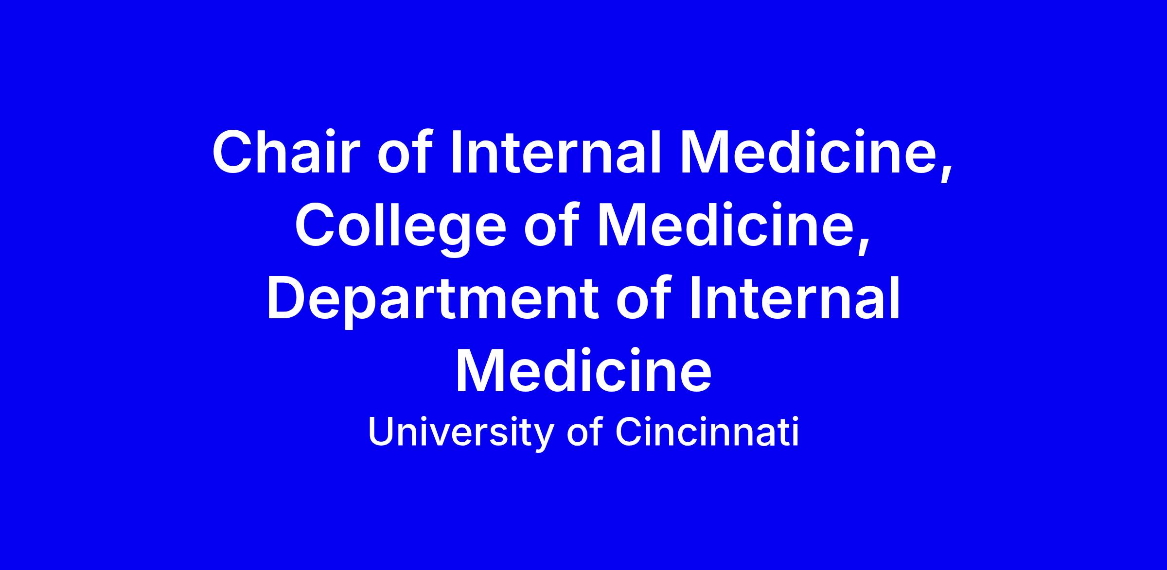 UC seeks a visionary Chair of Internal Medicine to lead a department across the College of Medicine, UC Health, and Cincinnati hospitals. This is a full-time onsite role focused on strategic direction, clinical excellence, high-impact research, and education within a collaborative interprofessional culture. The ideal candidate will have a proven record in scholarly leadership, successful faculty recruitment and development, and a history of securing extramural funding; must meet Full Professor criteria, hold an MD with an active Ohio license, and board certification in Internal Medicine; MD/PhD strongly encouraged. To apply, use the UC careers portal; internal candidates apply via SuccessFactors. Prepare a narrative that speaks to vision, impact, and partnership.