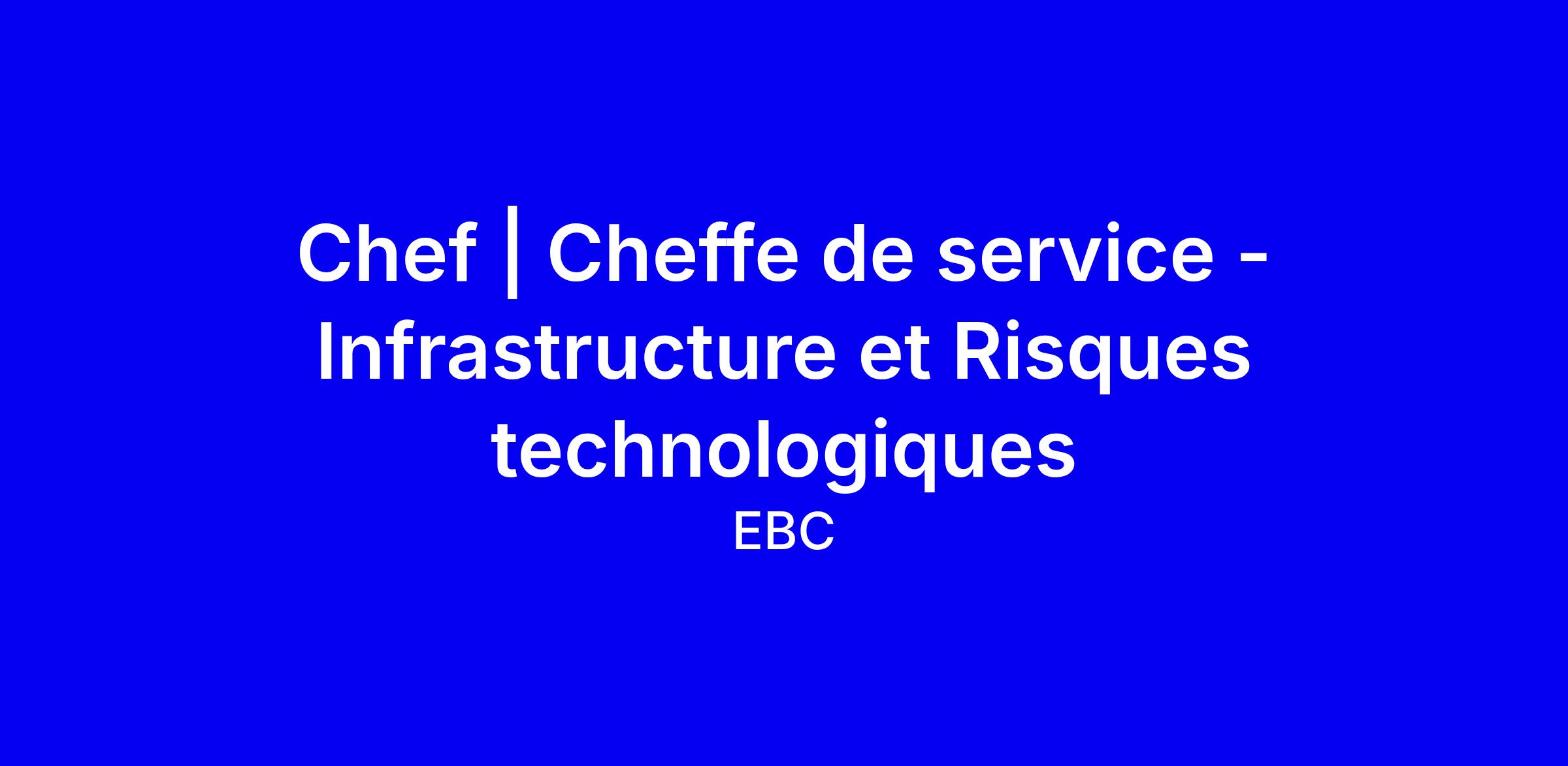 Relevant de la direction SIT, le Chef de service, Infrastructure et risques technologiques prend en charge le maintien et l’évolution de l’environnement infrastructure TI ainsi que la cybersécurité d’EBC. Parmi ses attributions, il devra planifier et suivre les budgets opérationnels et de projets relatifs à l’infrastructure TI et aura sous sa responsabilité les équipes infrastructure, systèmes utilisateurs et cybersécurité.