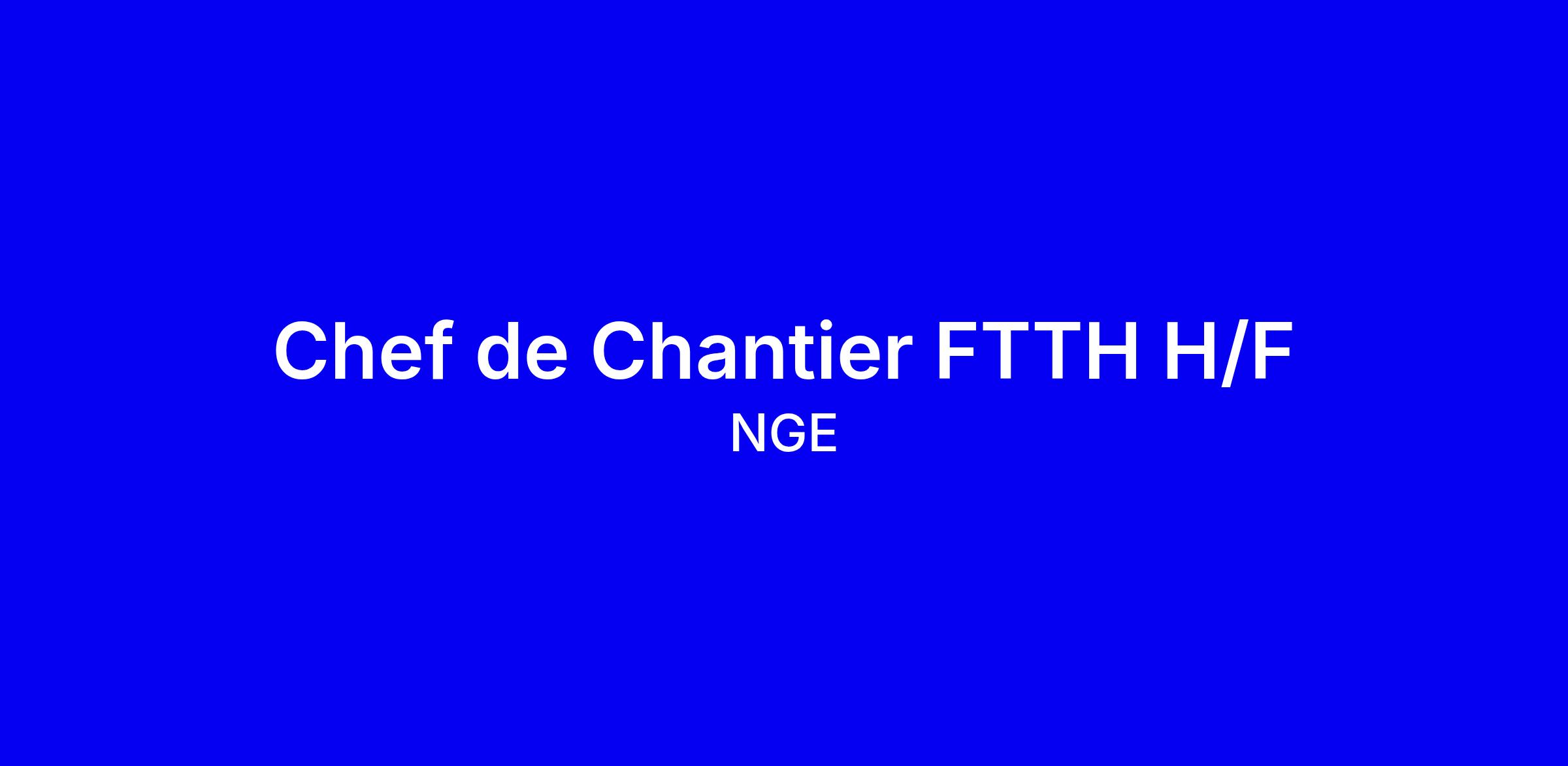 Dans le cadre du développement de l'activité Fibre Optique au sein du groupe NGE, nous recherchons un Chef de Chantier FTTH (H/F) spécialisé dans la fibre optique basé à Strasbourg (67).