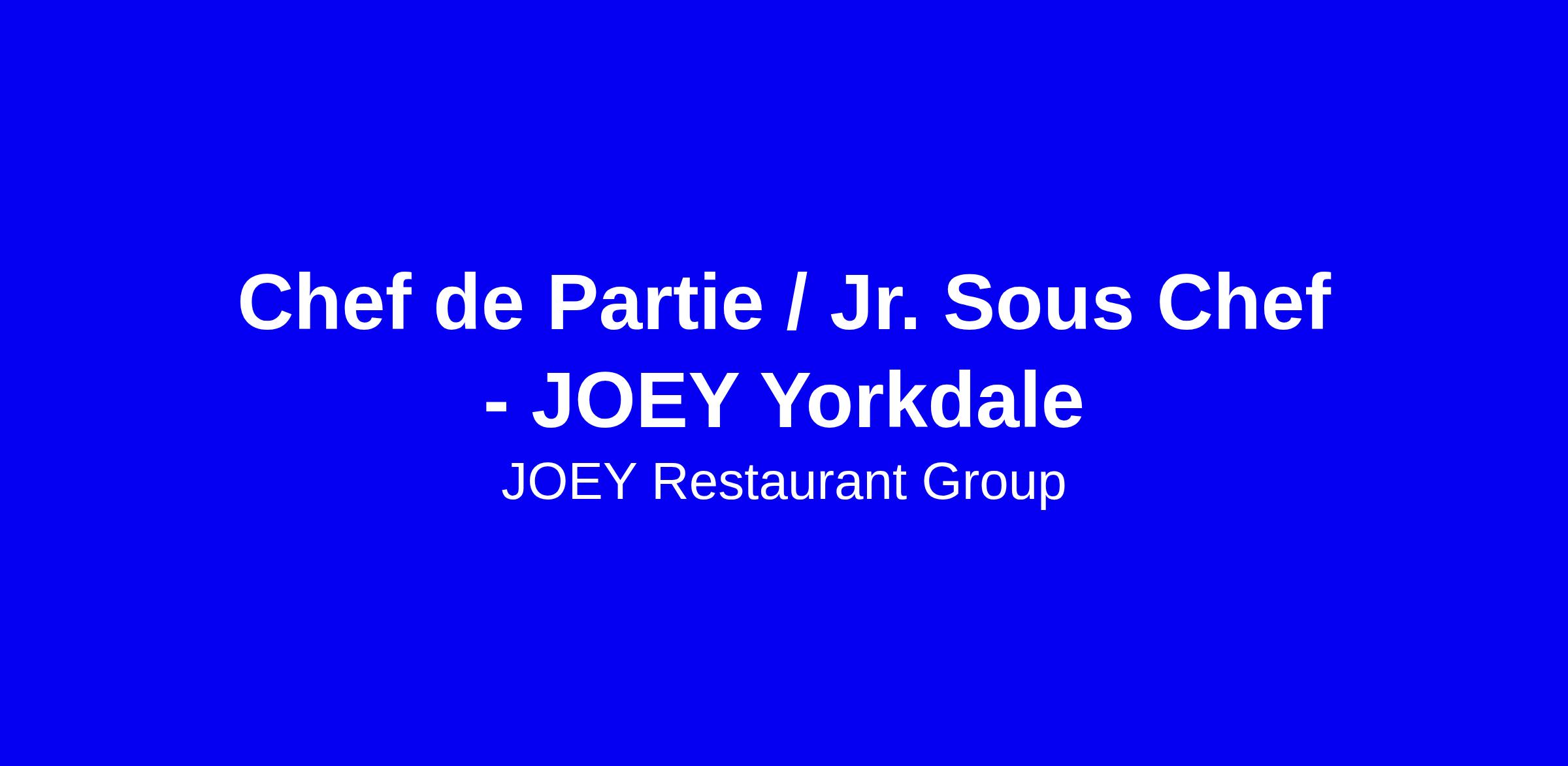 JOEY Yorkdale seeks a Chef de Partie or Jr. Sous Chef to join its team, and the three-month Accelerated Leadership Program. You will coach 50 to 100 teammates, drive quarterly goals, and uphold standards in product, profit, environment and guest experience in a multi-million dollar operation. Ideal candidates have 1-3+ years in culinary leadership, proven coaching and recruitment, P&L exposure, and Food Safe and Health & Safety certifications, plus willingness to open new restaurants across Canada and the US. Compensation is $21-28 per hour plus tips, with benefits and ongoing leadership development. Apply by tailoring your resume to show leadership impact, budgeting, hiring success, and cultural fit with JOEY values.