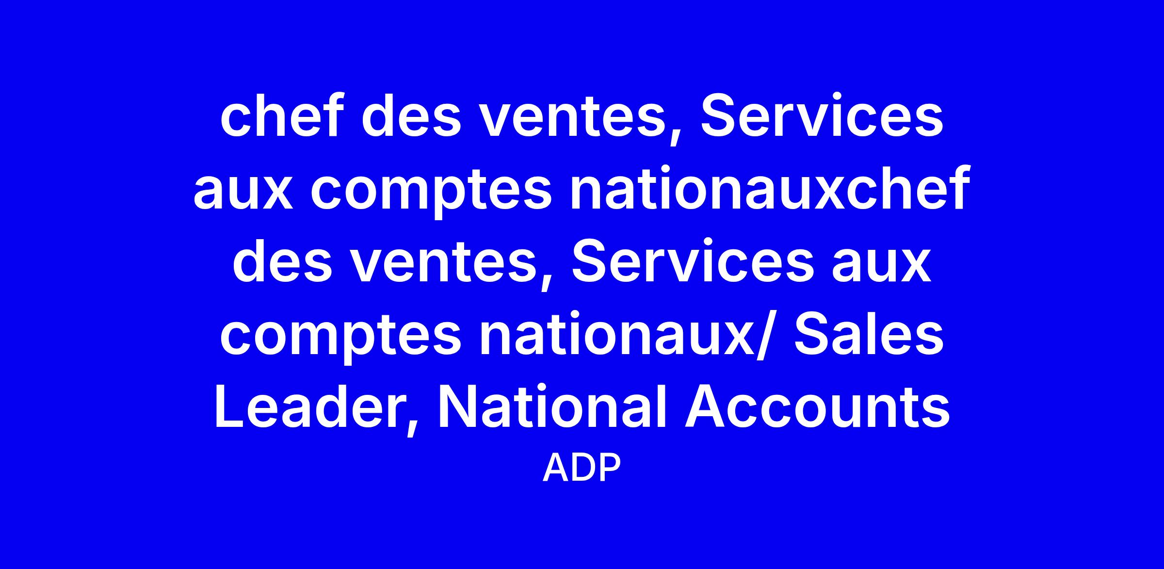 ADP est à la recherche d’un(e) chef des ventes, Services aux comptes nationaux – ventes au Canada (bilingue ou qui maîtrise le français)